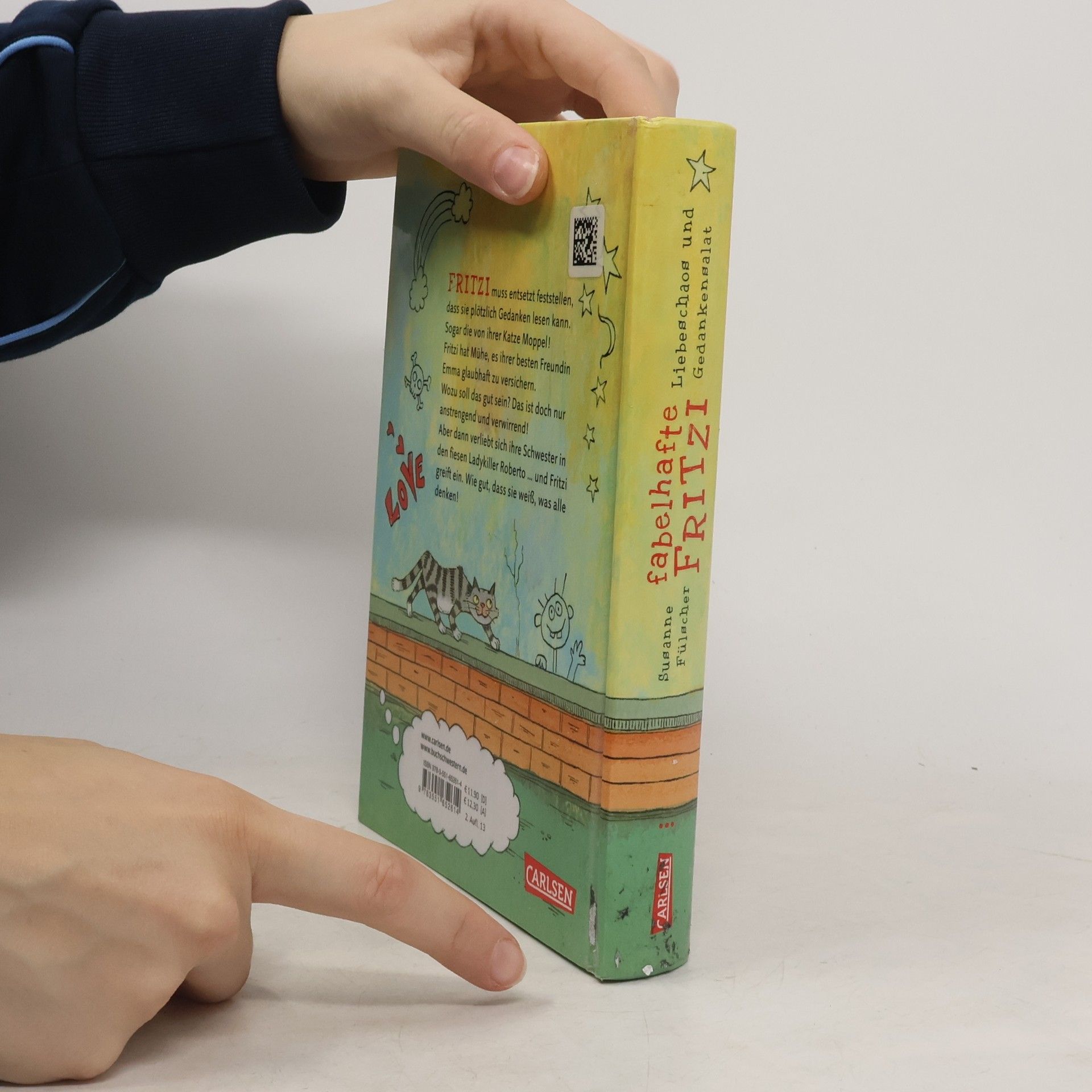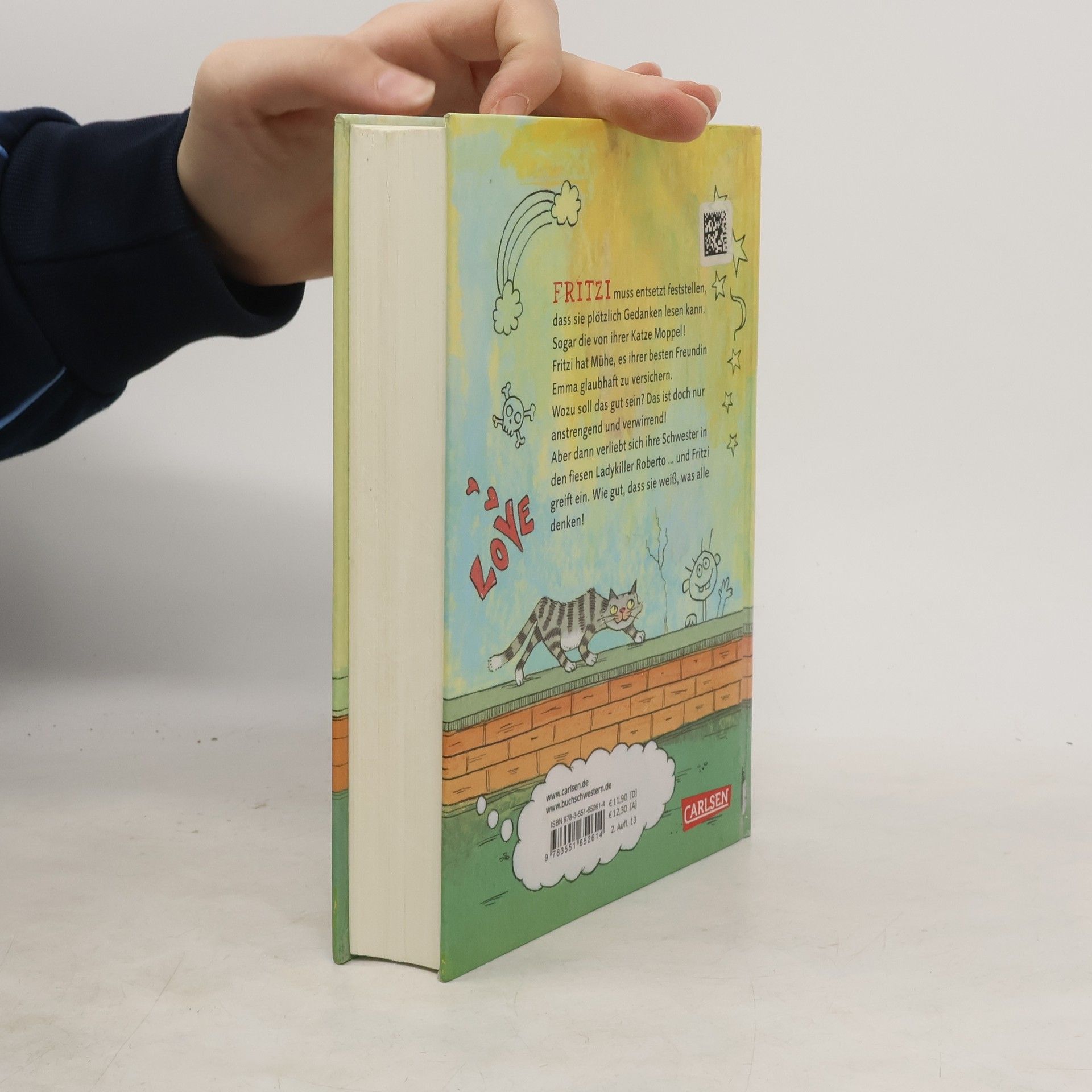 Fritzi muss entsetzt feststellen, dass sie plötzlich Gedanken lesen kann. Sogar die von ihrer Katze Moppel! Fritzi hat Mühe, es ihrer besten Freundin Emma glaubhaft zu versichern. Wozu soll das gut sein? Das ist nur anstrengend und verwirrend! Aber dann verliebt sich ihre Schwester in den fiesen Ladykiller Roberto. und Fritzi greift ein. Wie gut, dass sie weiß, was alle denken!