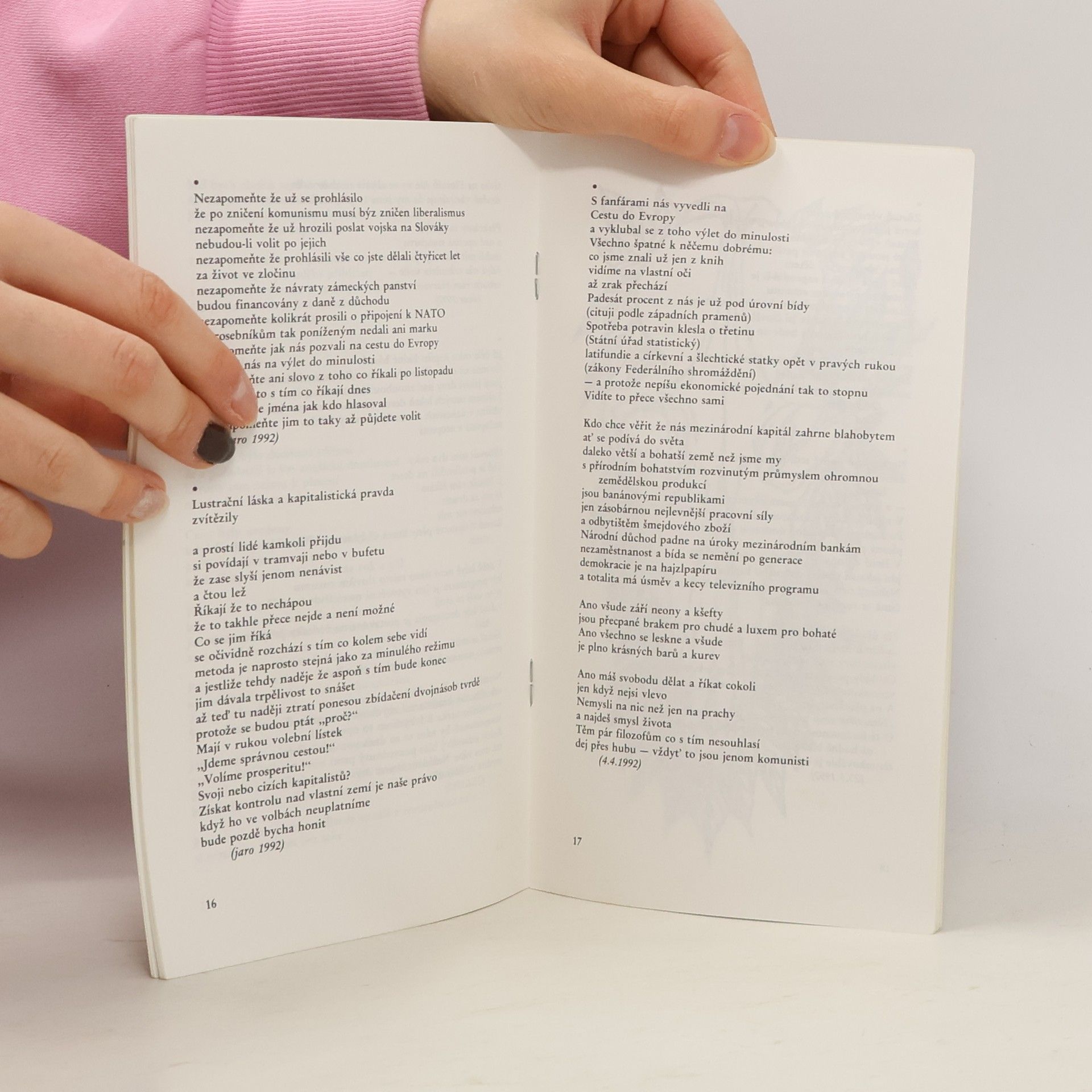 Svazek obsahuje autorovy verše z let 1991-1993, které se zamýšlejí nad politickým a společenským vývojem v tehdejším Československu.Vývoj je viděn značně negativně - v samotném titulu je pak personifikována vláda, parlament i prezident.