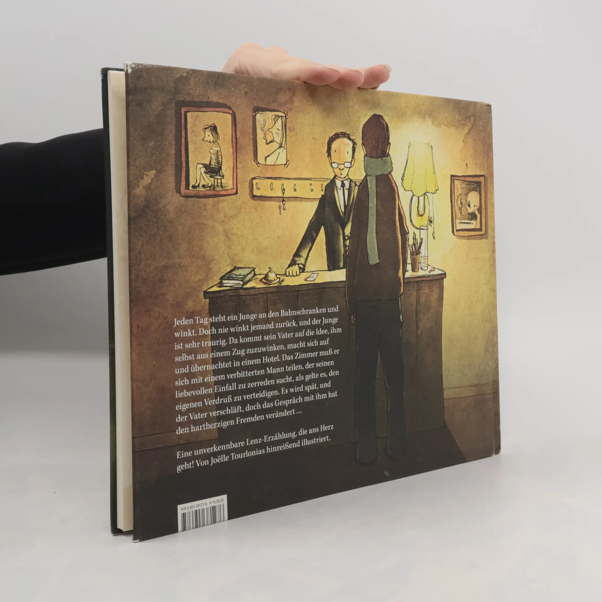 Die Meistererzählung von Siegfried Lenz stimmungsvoll illustriert Jeden Tag steht ein Junge an den Bahnschranken und winkt. Doch nie winkt jemand zurück, und der Junge ist sehr traurig. Da kommt sein Vater auf die Idee, ihm selbst aus einem Zug zuzuwinken, macht sich auf und übernachtet in einem Hotel. Das Zimmer muss er sich mit einem verbitterten Mann teilen, der seinen liebevollen Einfall zu zerreden sucht, als gelte es, den eigenen Verdruss zu verteidigen. Es wird spät, und der Vater verschläft, doch das Gespräch mit ihm hat den hartherzigen Fremden verändert ... Eine unverkennbare Lenz-Erzählung, die ans Herz geht, hinreißend von Joëlle Tourlonias in Szene gesetzt.
