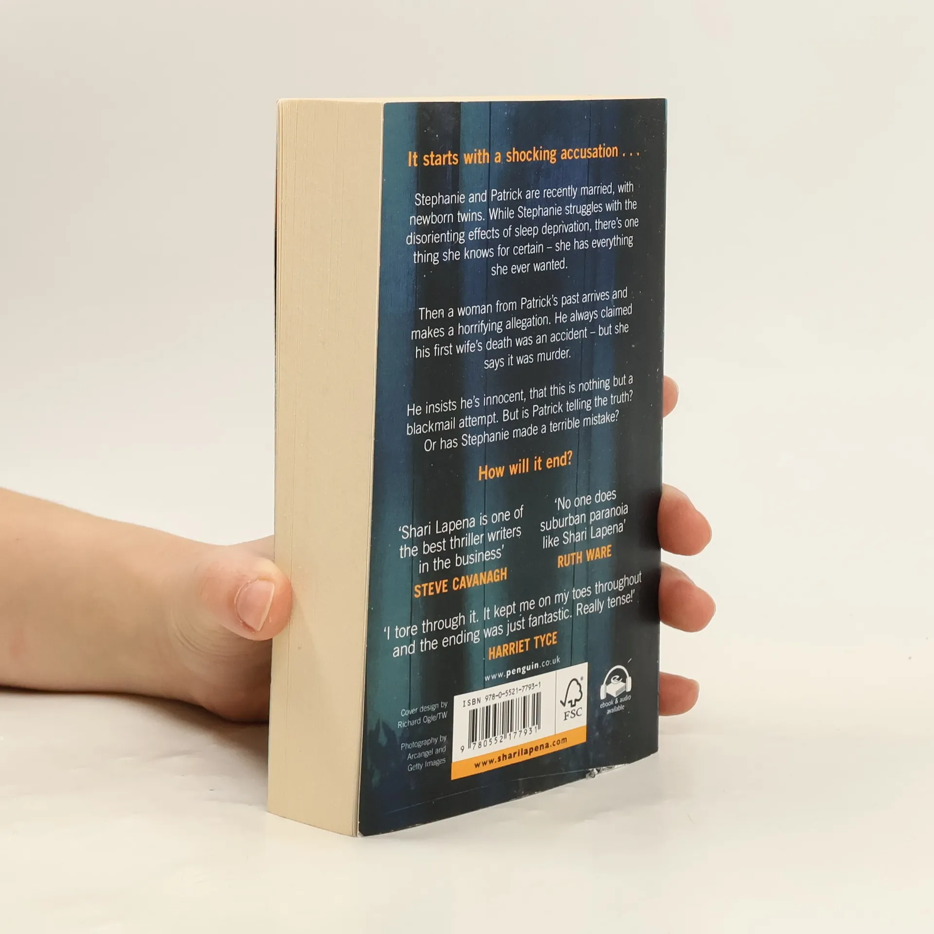 It starts with a shocking accusation... Stephanie and Patrick are recently married, with new-born twins. While Stephanie struggles with the disorienting effects of sleep deprivation, there's one thing she knows for certain - she has everything she ever wanted. Then a woman from his past arrives and makes a horrifying allegation about his first wife. He always claimed her death was an accident - but she says it was murder. He insists he's innocent, that this is nothing but a blackmail attempt. But is Patrick telling the truth? Or has Stephanie made a terrible mistake? How will it end?