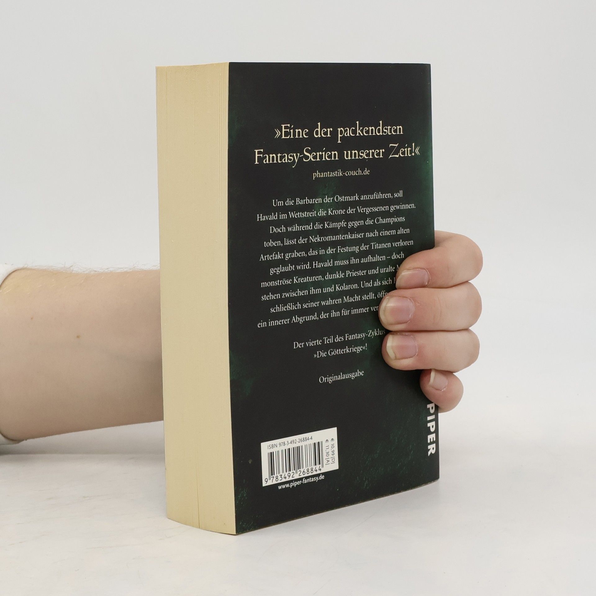 Endlich setzt Richard Schwartz seine hochgelobte Saga »Die Götterkriege« fort – diesmal sieht sich Havald, der Engel des Todes, seiner dunkelsten Bedrohung gegenüber: Der Feind hat einen raffinierten Plan entworfen, um den vernichtenden Angriff Thalaks auf die sieben Reiche vorzubereiten. An der Festung der Titanen soll ein Wettkampf entscheiden, wer die Krone der Vergessenen gewinnt und damit die Barbaren der Ostmark anführt. Bis dahin herrscht Waffenstillstand, doch während der Nekromantenkaiser nach einem alten Artefakt gräbt und Havalds Verbündete sich gefährlichen Intrigen aussetzen müssen, steht die wahre Bedrohung noch bevor. Denn Havald ahnt nicht, welch schreckliches Verhängnis der letzte Gegner des Wettkampfes für ihn bereithält – und dass ein tiefes Dunkel in seiner eigenen Seele auf den Moment wartet, um auszubrechen …