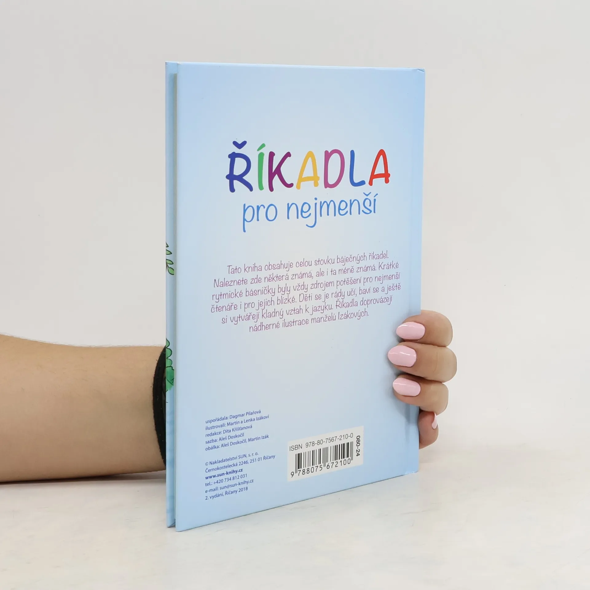 Tato kniha obsahuje celou stovku říkadel. Naleznete zde některá známá, ale i ta méně známá. Krátké rytmické básničky byly vždy zdrojem potěšení pro nejmenší čtenáře i pro jejich blízké. Děti se je rády učí, baví se a ještě si vytvářejí kladný vztah k jazyku. Říkadla doprovázejí nádherné ilustrace manželů Izákových.