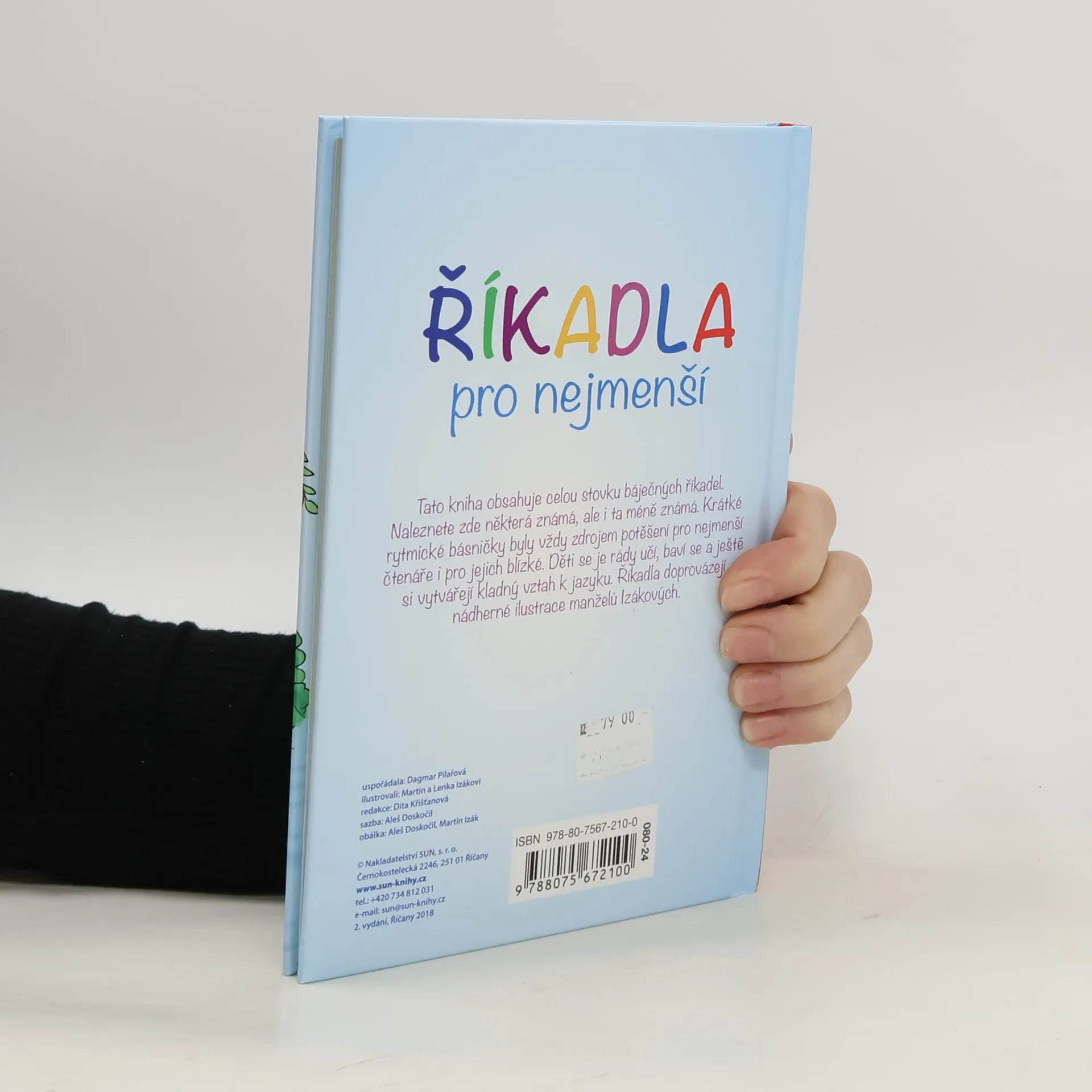 Tato kniha obsahuje celou stovku říkadel. Naleznete zde některá známá, ale i ta méně známá. Krátké rytmické básničky byly vždy zdrojem potěšení pro nejmenší čtenáře i pro jejich blízké. Děti se je rády učí, baví se a ještě si vytvářejí kladný vztah k jazyku. Říkadla doprovázejí nádherné ilustrace manželů Izákových.