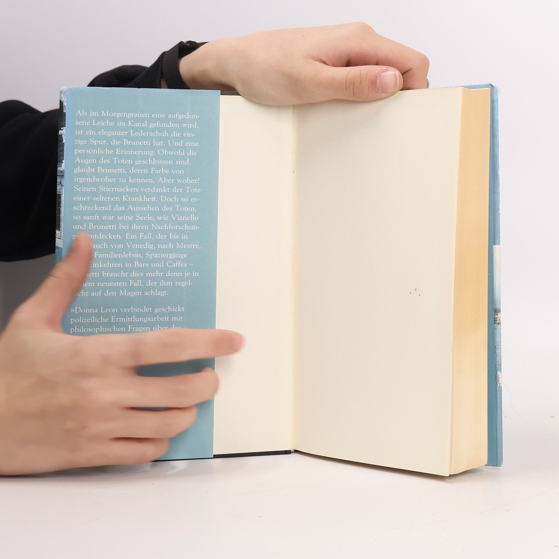 Ein toter Mann, der von niemandem vermisst wird, weder von den Venezianern noch von Touristen. Und ein teurer Lederschuh am Fuß dieser Leiche. Brunetti muss all seine Menschenkenntnis aufbieten und sein ganzes Kombinationstalent, um diesen Fall zu lösen, der ihn bis aufs Festland nach Mestre führt.