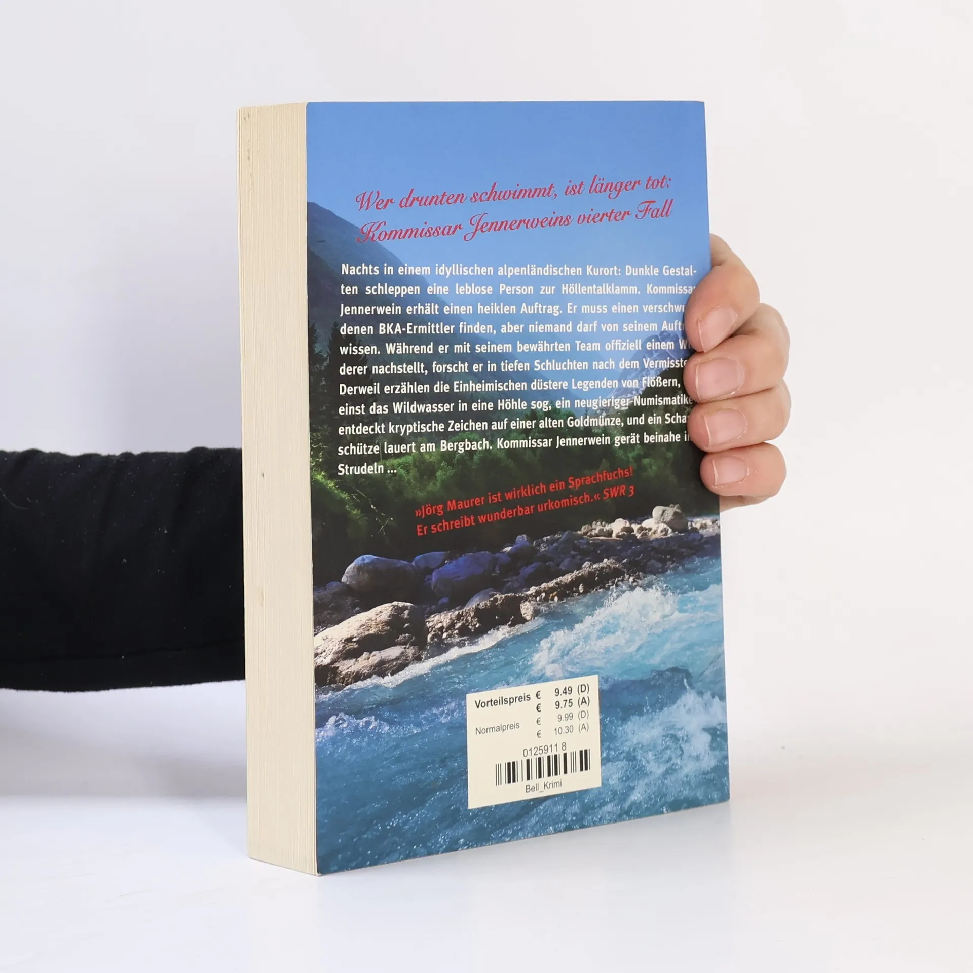 Wer drunten schwimmt, ist länger tot: Kommissar Jennerweins vierter FallNachts in einem idyllischen alpenländischen Kurort: Dunkle Gestalten schleppen eine leblose Person zur Höllentalklamm. Kommissar Jennerwein erhält einen heiklen Auftrag. Er muss einen verschwundenen BKA-Ermittler finden, aber niemand darf wissen, dass er nach ihm sucht. Während er mit seinem bewährten Team offiziell einem Wilderer nachstellt, forscht er in Gumpen und Schluchten nach dem Vermissten. Derweil erzählen die Einheimischen düstere Legenden von Flößern, die einst das Wildwasser in eine Höhle sog, ein neugieriger Numismatiker entdeckt kryptische Zeichen auf einer alten Goldmünze, und ein Scharfschütze lauert am Bergbach. Kommissar Jennerwein gerät beinahe ins Strudeln…