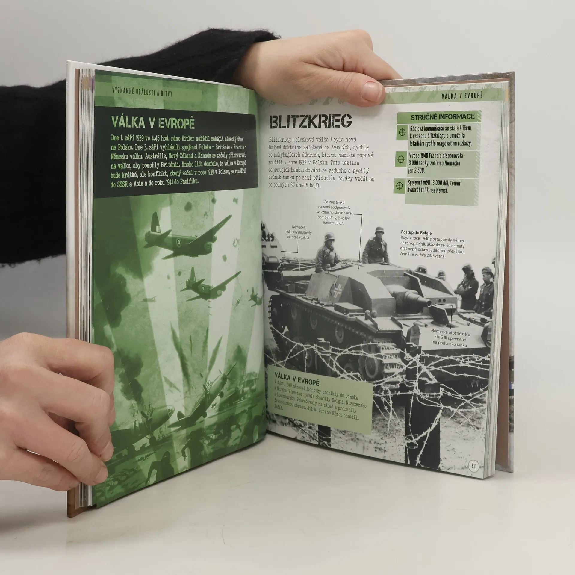 Druhá světová válku ze všech možných úhlů. Přinášíme vám obrazového průvodce nejznámějšími bojišti tohoto konfliktu, na který by se nikdy nemělo zapomenout. Zjistíte, proč k této válce došlo, jaké byly její příčiny i následky. Poznáte zbraně, tanky, letadla, lodě i vojenské strategie té doby. Ocitnete se přímo v bitvách a seznámíte se s nejvýraznějšími osobnostmi této války, ale i se statečnými vojáky, kteří sloužili na obou znepřátelených stranách. Ukážeme vám, jak technologický pokrok ovlivnil konečný výsledek této světové války.