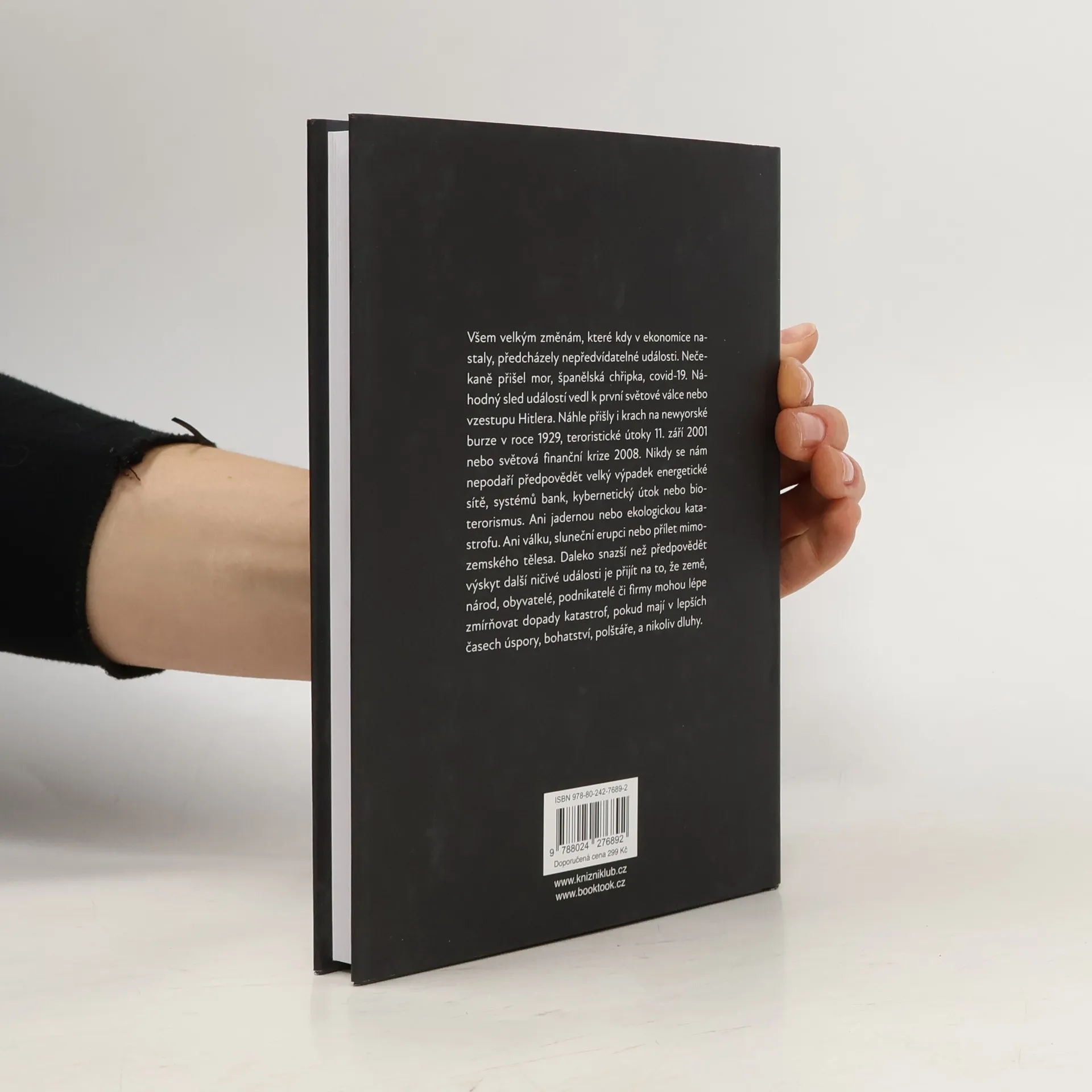 Velkým změnám, které kdy v ekonomice nastaly, předcházely nepředvídatelné události. Nečekaně přišel mor, španělská chřipka, covid-19. Náhodný sled událostí vedl k první světové válce nebo vzestupu Hitlera. Náhle přišly i krach na newyorské burze v roce 1929, teroristické útoky 11. září 2001 nebo světová finanční krize 2008. Nikdy se nám nepodaří předpovědět velký výpadek energetické sítě, systémů bank, kybernetický útok nebo bioterorismus. Ani jadernou nebo ekologickou katastrofu. Ani válku, sluneční erupci nebo přílet mimozemského tělesa. Daleko snazší než předpovědět výskyt další ničivé události je přijít na to, že země, národ, obyvatelé, podnikatelé či firmy mohou lépe zmírňovat dopady katastrof, pokud mají v lepších časech úspory, bohatství, polštáře, a nikoliv kupu dluhů.