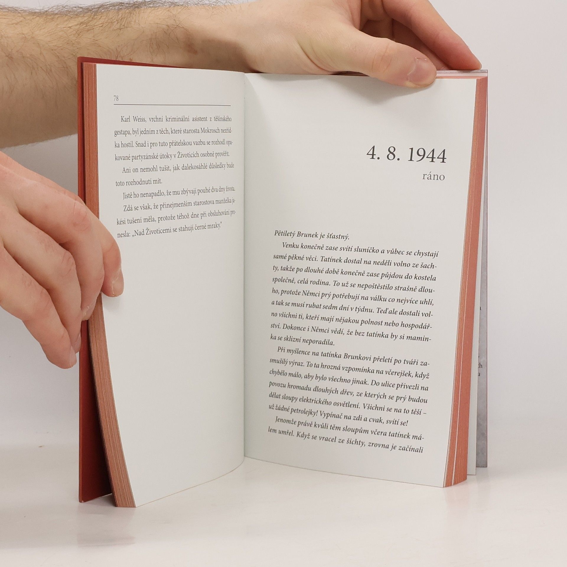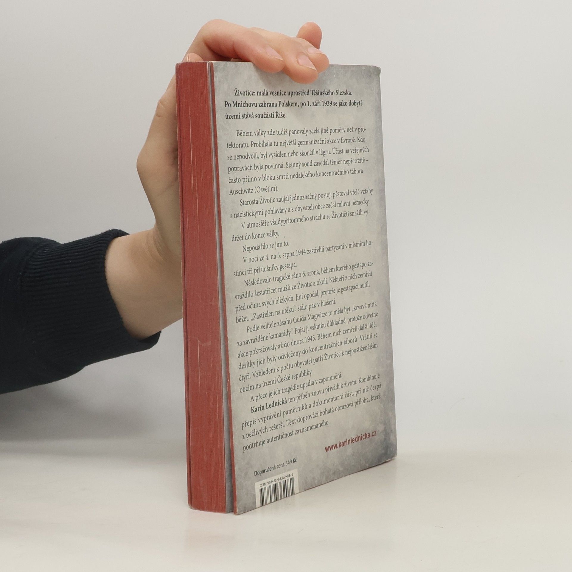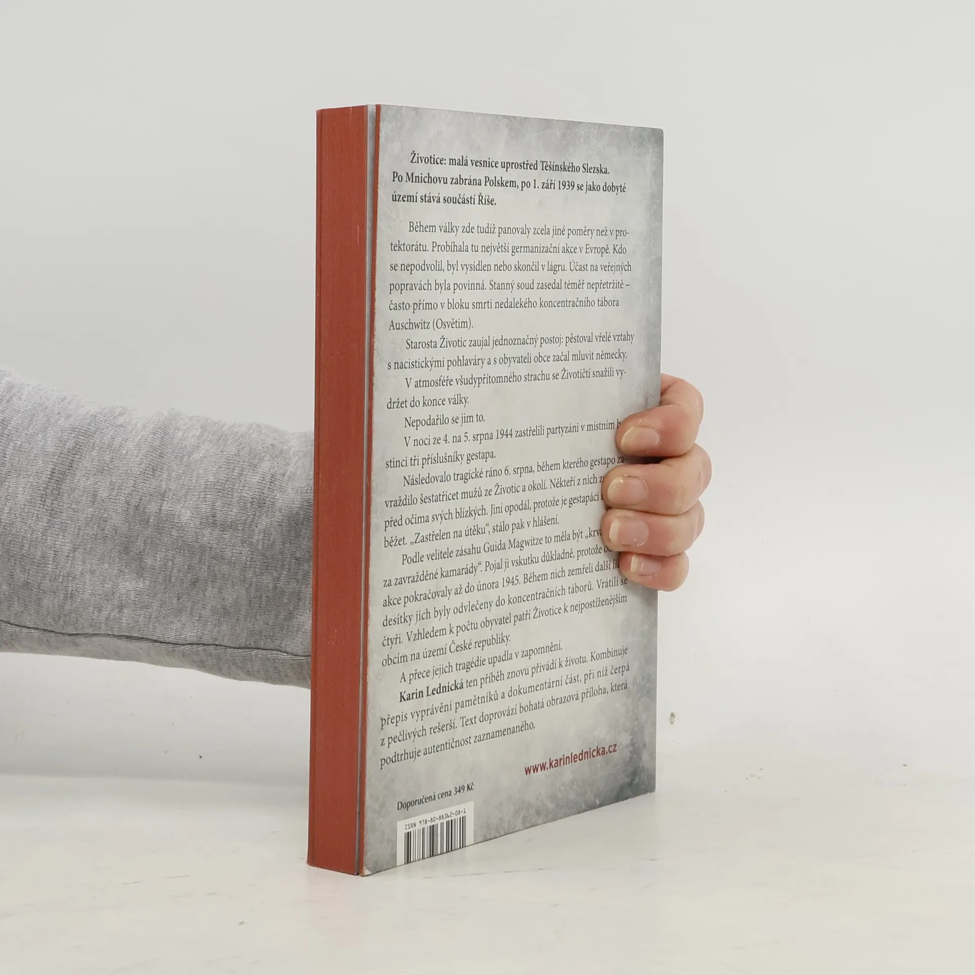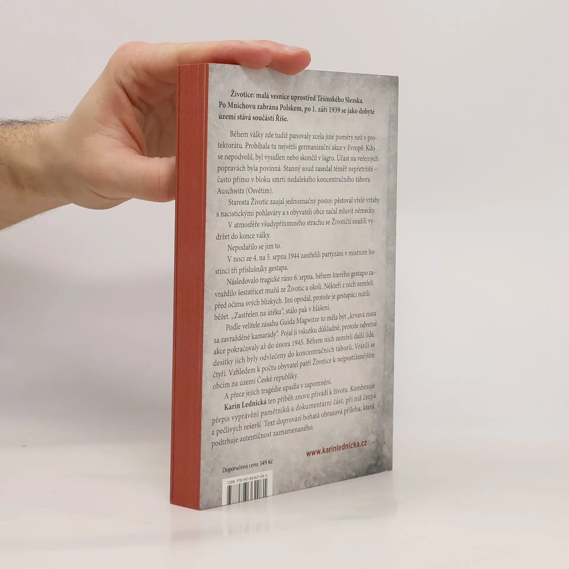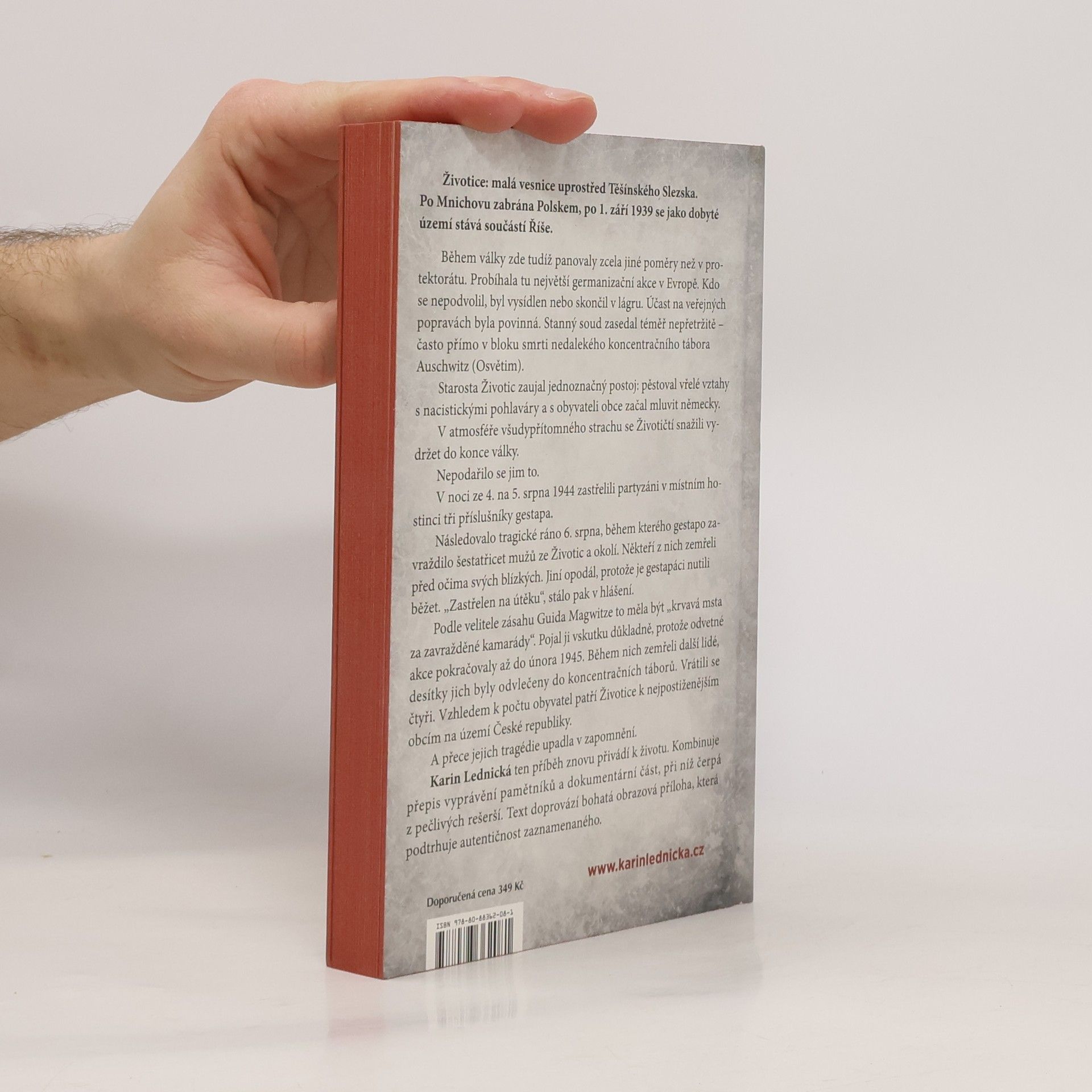 Životice: malá vesnice uprostřed Těšínského Slezska. Po Mnichovu zabrána Polskem, po 1. září 1939 se jako dobyté území stává součástí Říše. Během války zde tudíž panovaly zcela jiné poměry než v protektorátu. Probíhala tu největší germanizační akce v Evropě. Kdo se nepodvolil, byl vysídlen nebo skončil v lágru. Účast na veřejných popravách byla povinná. Stanný soud zasedal téměř nepřetržitě – často přímo v bloku smrti nedalekého koncentračního tábora Auschwitz (Osvětim). Starosta Životic zaujal jednoznačný postoj: pěstoval vřelé vztahy s nacistickými pohlaváry a s obyvateli obce začal mluvit německy. V atmosféře všudypřítomného strachu se Životičtí snažili vydržet do konce války. Nepodařilo se jim to. Karin Lednická ten příběh znovu přivádí k životu. Kombinuje přepis vyprávění pamětníků a dokumentární část, při níž čerpá z pečlivých rešerší. Text doprovází bohatá obrazová příloha, která podtrhuje autentičnost zaznamenaného.