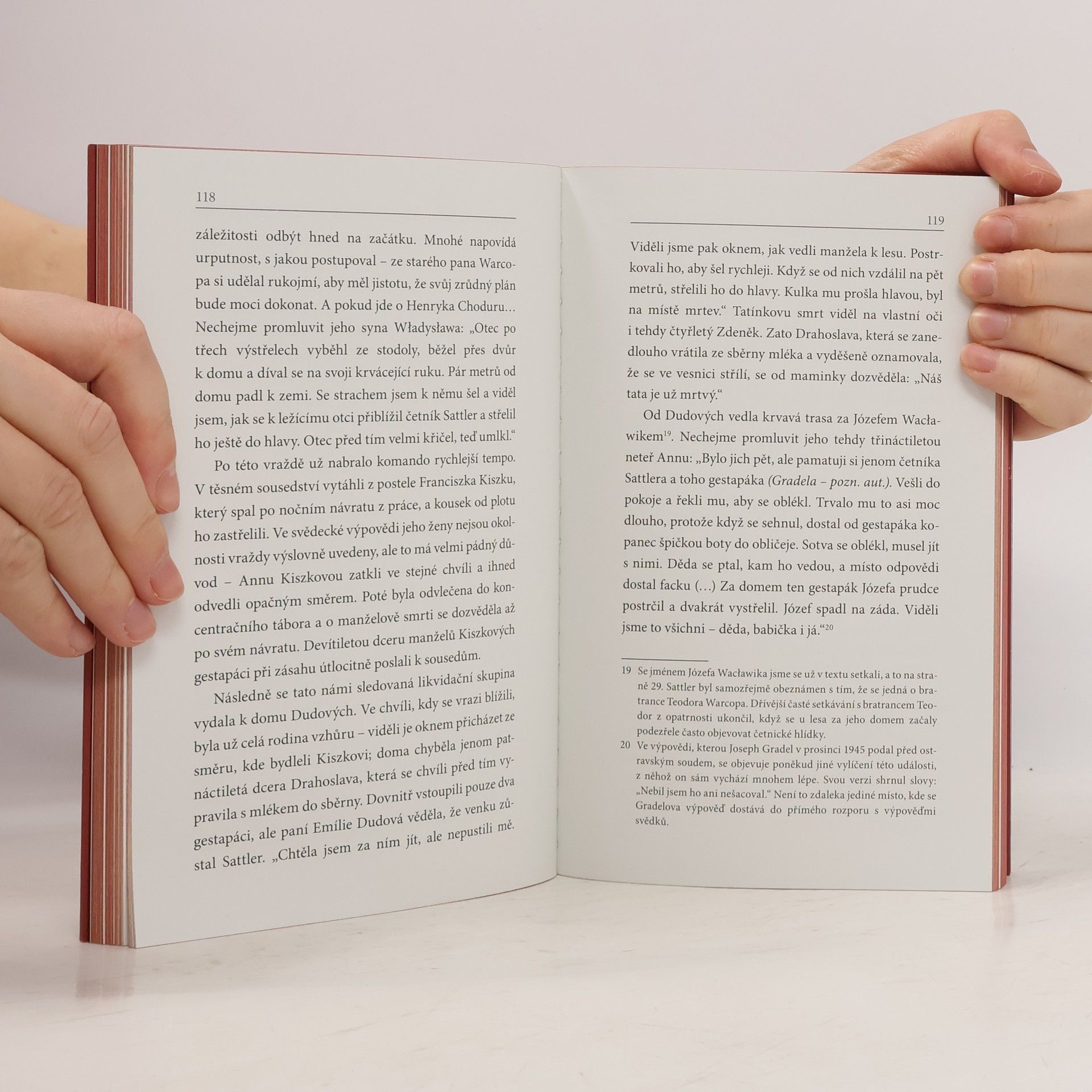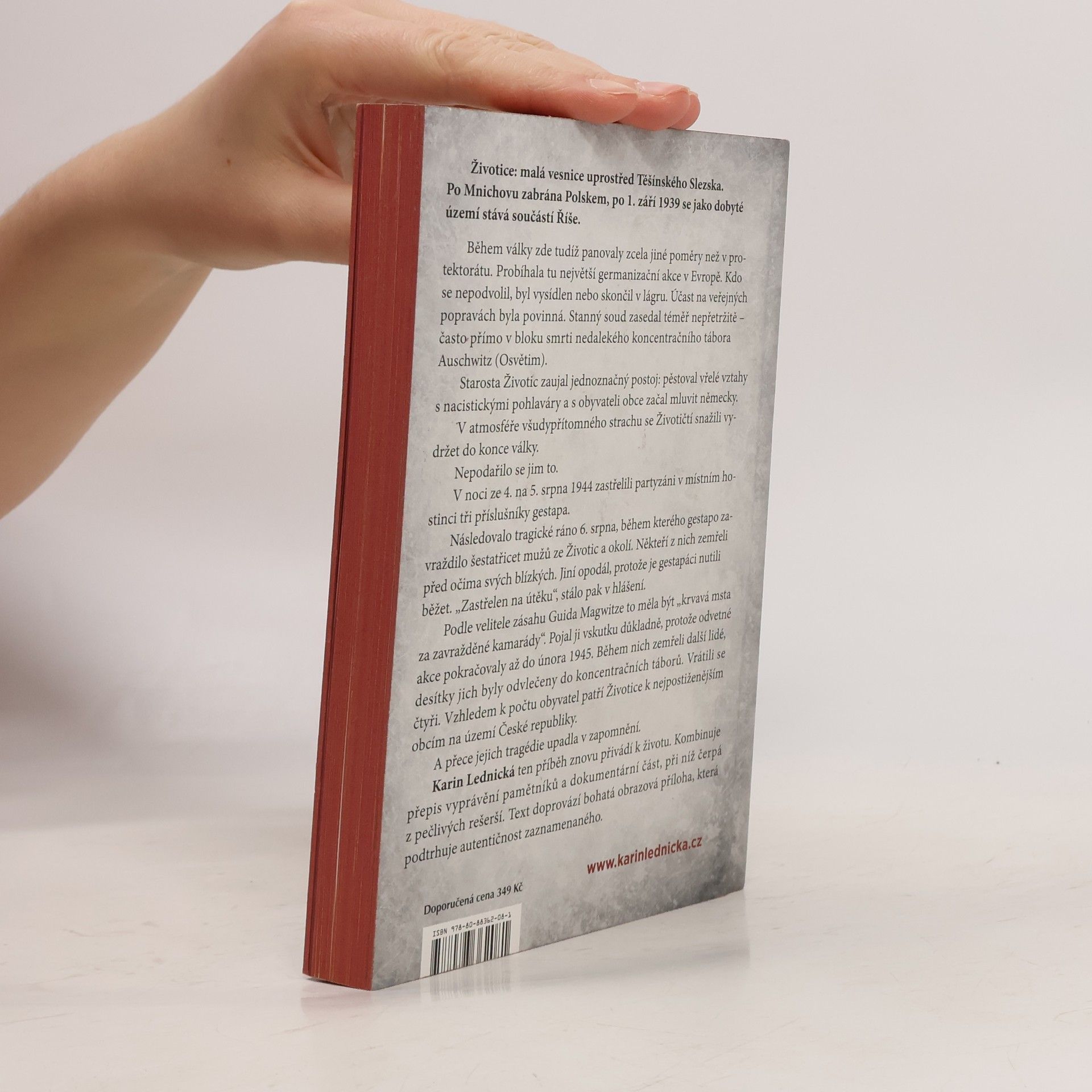 Životice: malá vesnice uprostřed Těšínského Slezska. Po Mnichovu zabrána Polskem, po 1. září 1939 se jako dobyté území stává součástí Říše. Během války zde tudíž panovaly zcela jiné poměry než v protektorátu. Probíhala tu největší germanizační akce v Evropě. Kdo se nepodvolil, byl vysídlen nebo skončil v lágru. Účast na veřejných popravách byla povinná. Stanný soud zasedal téměř nepřetržitě – často přímo v bloku smrti nedalekého koncentračního tábora Auschwitz (Osvětim). Starosta Životic zaujal jednoznačný postoj: pěstoval vřelé vztahy s nacistickými pohlaváry a s obyvateli obce začal mluvit německy. V atmosféře všudypřítomného strachu se Životičtí snažili vydržet do konce války. Nepodařilo se jim to. Karin Lednická ten příběh znovu přivádí k životu. Kombinuje přepis vyprávění pamětníků a dokumentární část, při níž čerpá z pečlivých rešerší. Text doprovází bohatá obrazová příloha, která podtrhuje autentičnost zaznamenaného.