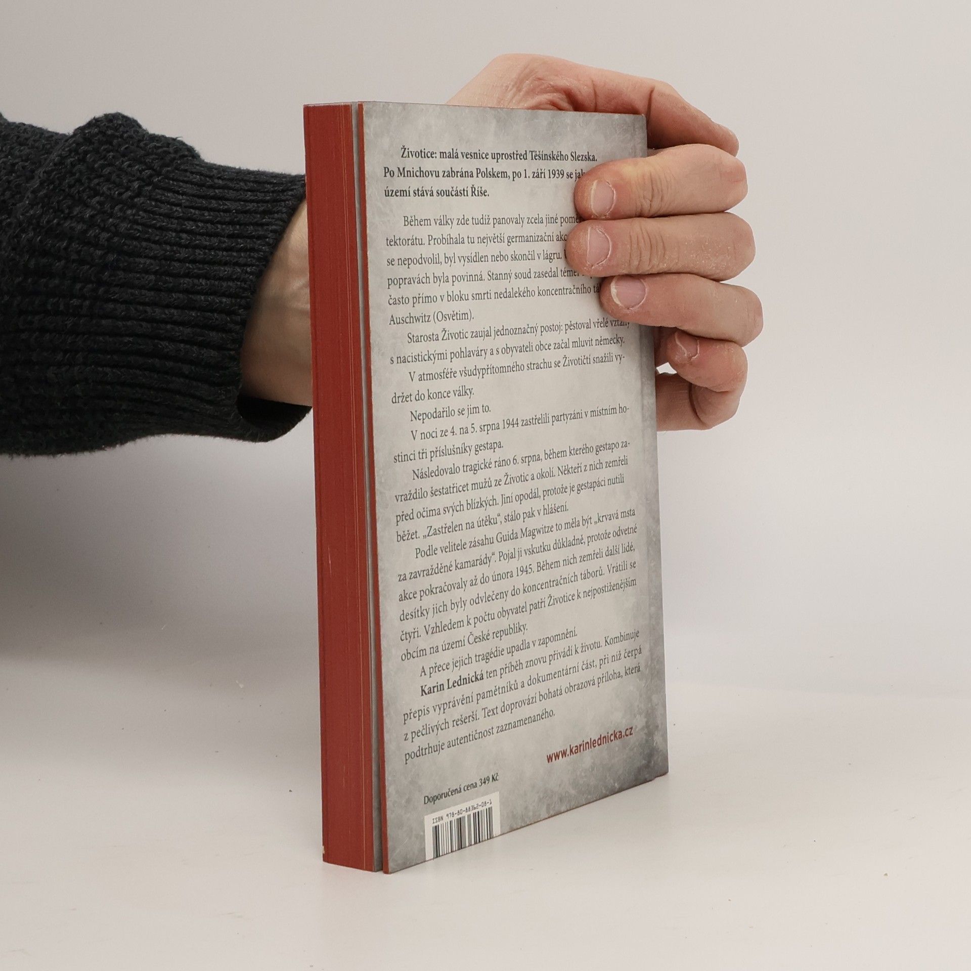 Životice: malá vesnice uprostřed Těšínského Slezska. Po Mnichovu zabrána Polskem, po 1. září 1939 se jako dobyté území stává součástí Říše. Během války zde tudíž panovaly zcela jiné poměry než v protektorátu. Probíhala tu největší germanizační akce v Evropě. Kdo se nepodvolil, byl vysídlen nebo skončil v lágru. Účast na veřejných popravách byla povinná. Stanný soud zasedal téměř nepřetržitě – často přímo v bloku smrti nedalekého koncentračního tábora Auschwitz (Osvětim). Starosta Životic zaujal jednoznačný postoj: pěstoval vřelé vztahy s nacistickými pohlaváry a s obyvateli obce začal mluvit německy. V atmosféře všudypřítomného strachu se Životičtí snažili vydržet do konce války. Nepodařilo se jim to. Karin Lednická ten příběh znovu přivádí k životu. Kombinuje přepis vyprávění pamětníků a dokumentární část, při níž čerpá z pečlivých rešerší. Text doprovází bohatá obrazová příloha, která podtrhuje autentičnost zaznamenaného.