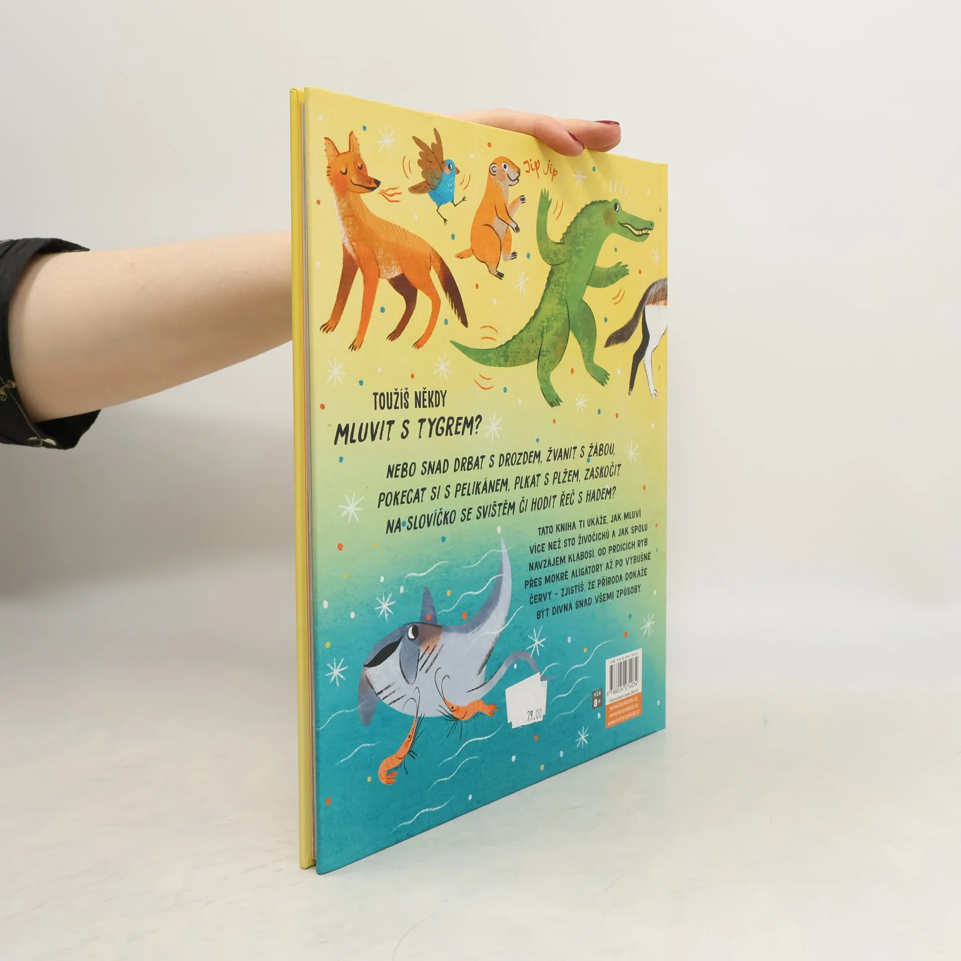 Toužíš někdy mluvit s tygrem? Nebo snad drbat s drozdem, žvanit s žábou, pokecat si s pelikánem, plkat s plžem, zaskočit na slovíčko se svištěm či hodit řeč s hadem? Tato kniha ti ukáže, jak mluví více než sto živočichů a jak spolu navzájem klábosí. Od prdících ryb přes mokré aligátory až po výbušné červy – zjistíš, že příroda dokáže být divná snad všemi způsoby. Pro děti od 8 let.ú