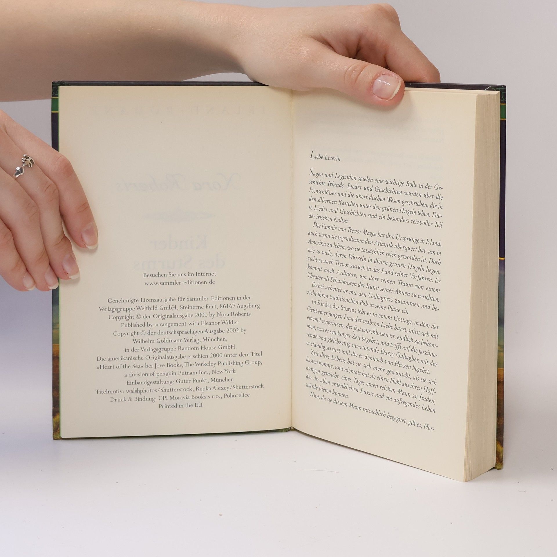 Darcy und Trevor: Sie fühlen sich wie magisch voneinander angezogen – doch wird er sein Herz je wieder öffnen können? Die selbstbewusste Darcy Gallagher glaubt fest an die Magie der Legenden – und an die Macht des Geldes. Eines Tages kommt der amerikanische Geschäftsmann Trevor Magee in den kleinen irischen Ort Ardmore, in dem Darcy mit ihren Brüdern Aidan und Shawn einen Pub führt. Er möchte dort ein Theater bauen. Auf der Stelle ist er fasziniert von der eigenwilligen Darcy, die ihn mit ihrer Schönheit und wachen Intelligenz alles andere vergessen lässt. Doch als ihre Leidenschaft in Liebe umschlägt, passiert etwas völlig Unerwartetes …Alle Bände der Reihe: Insel des Sturms. Die Sturm-Trilogie 1Nächte des Sturms. Die Sturm-Trilogie 2Kinder des Sturms. Die Sturm-Trilogie 3