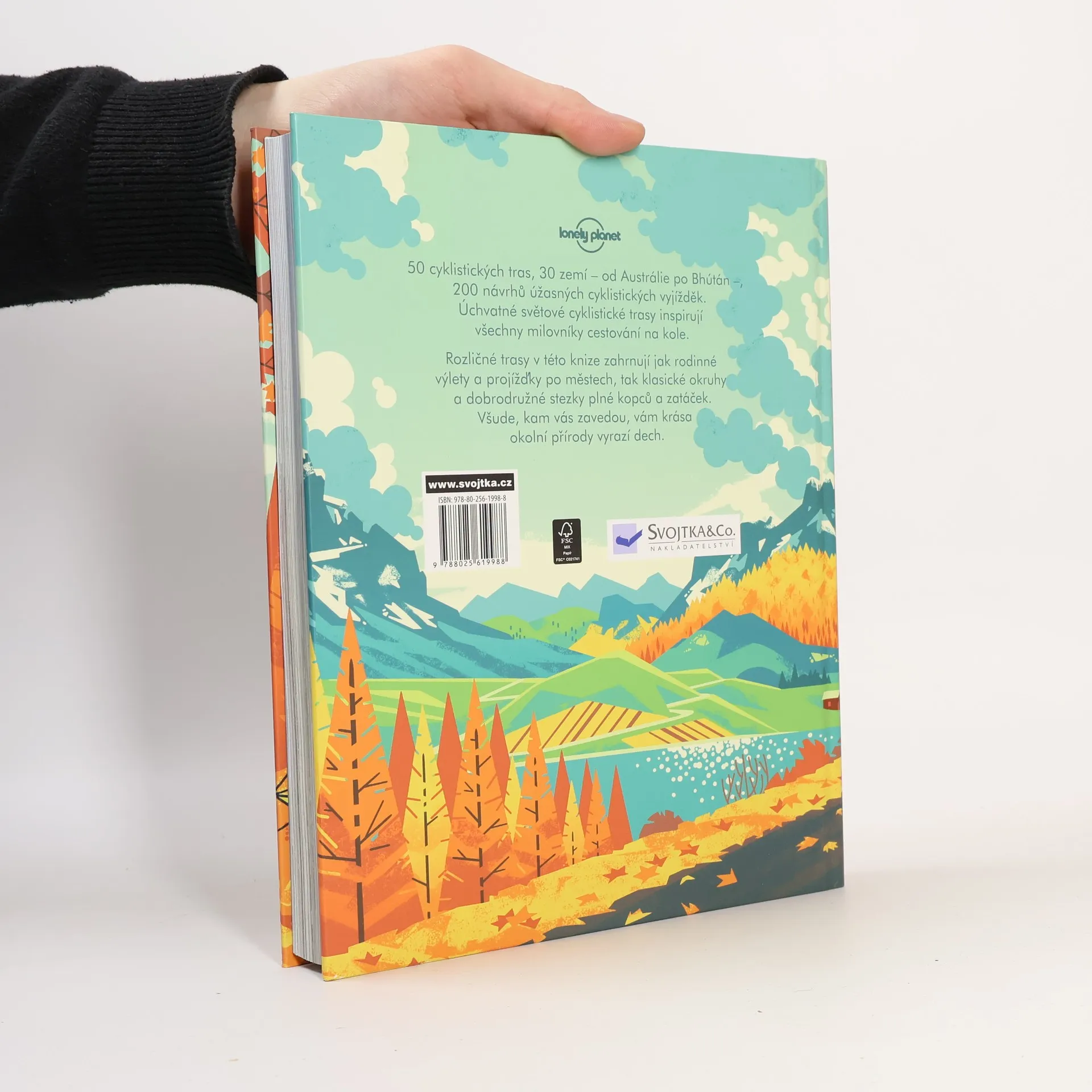 Objevování světa z cyklistického sedla je nezapomenutelným zážitkem. Tato kniha přináší nejkrásnější cyklistické trasy z celého světa, které vás zavedou do fascinujících koutů různých kontinentů. V Africe můžete prozkoumat trasu Tour d´Afrique nebo se vydat do pohoří Rif v Maroku. V Americe vás čekají zážitky jako houpačka jižní Kuby, Patagonie v Argentině či Natchez Trace Parkway ve Spojených státech. Rodinné dovolené v Ekvádoru a pivní okruh v Coloradu jsou dalšími lákadly. Severoamerické pobřeží Pacifiku a mountain biking v Moabu vám nabídnou nezapomenutelné výhledy. Asie nabízí dobrodružství kolem Mai Chau ve Vietnamu, expedice po Mongolsku a cesty po Himálaji v Indii. V Evropě objevíte bavorskou pivní trasu, cyklostezky podél Dunaje, Monte Amiata v Itálii a výjezd na Mt. Ventoux ve Francii. Cyklistika po Picos ve Španělsku a projížďka uměleckou Kodaní v Dánsku vás nadchnou. Oceánie láká na pláže a kola v Adelaide, Old Ghost Road na Novém Zélandu a cyklotrasu Alps 2 Ocean. Tato kniha je ideálním průvodcem pro všechny cyklistické nadšence hledající inspiraci pro své další dobrodružství.