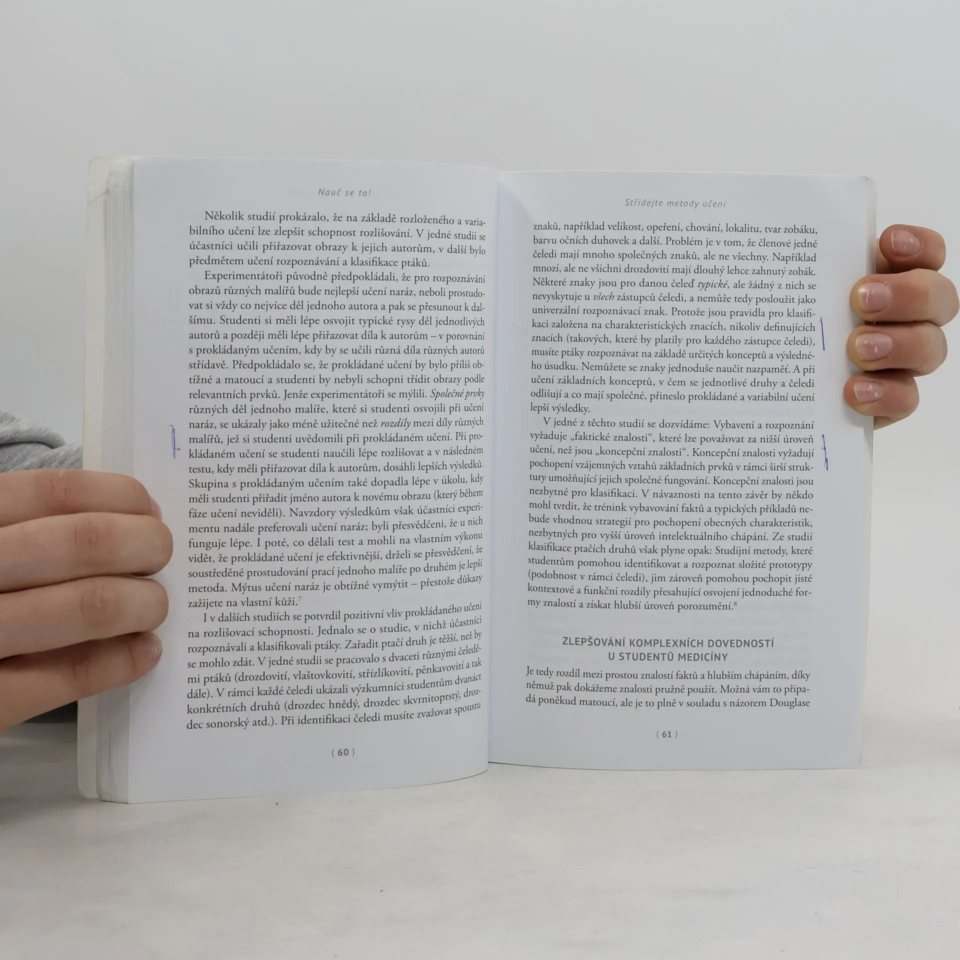 Kniha ukazuje, že běžné studijní metody, jako je podtrhávání, opětovné čtení nebo mechanické opakování, jsou často kontraproduktivní. Tyto techniky vytvářejí iluzi ovládání látky, která se však rychle rozplyne. Pro komplexnější a trvalejší naučení je klíčové sebetestování a zavedení určitých obtíží do procesu učení, jako je odložení opakování látky, dokud ji trochu nezapomeneme, a prokládání učení různými dovednostmi nebo tématy. Autoři se opírají o moderní výzkumy kognitivní psychologie a nabízejí konkrétní metody, jak se stát efektivnějšími studenty. Paměť hraje zásadní roli v naší schopnosti řešit složité kognitivní úlohy, například pomocí předchozích znalostí. Vědecké poznatky o tom, jak se informace kódují, konsolidují a vybavují, nám umožňují lépe porozumět učení. Klíčovým zjištěním je, že překonávání obtíží při učení vede k hlubšímu zvládnutí látky a lepšímu uchování informací v paměti. Kniha je určena studentům, učitelům, trenérům a sportovcům, ale její přínos ocení každý, kdo se zajímá o celoživotní vzdělávání a osobní rozvoj.