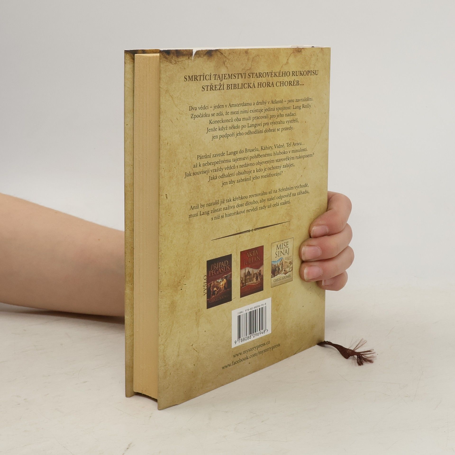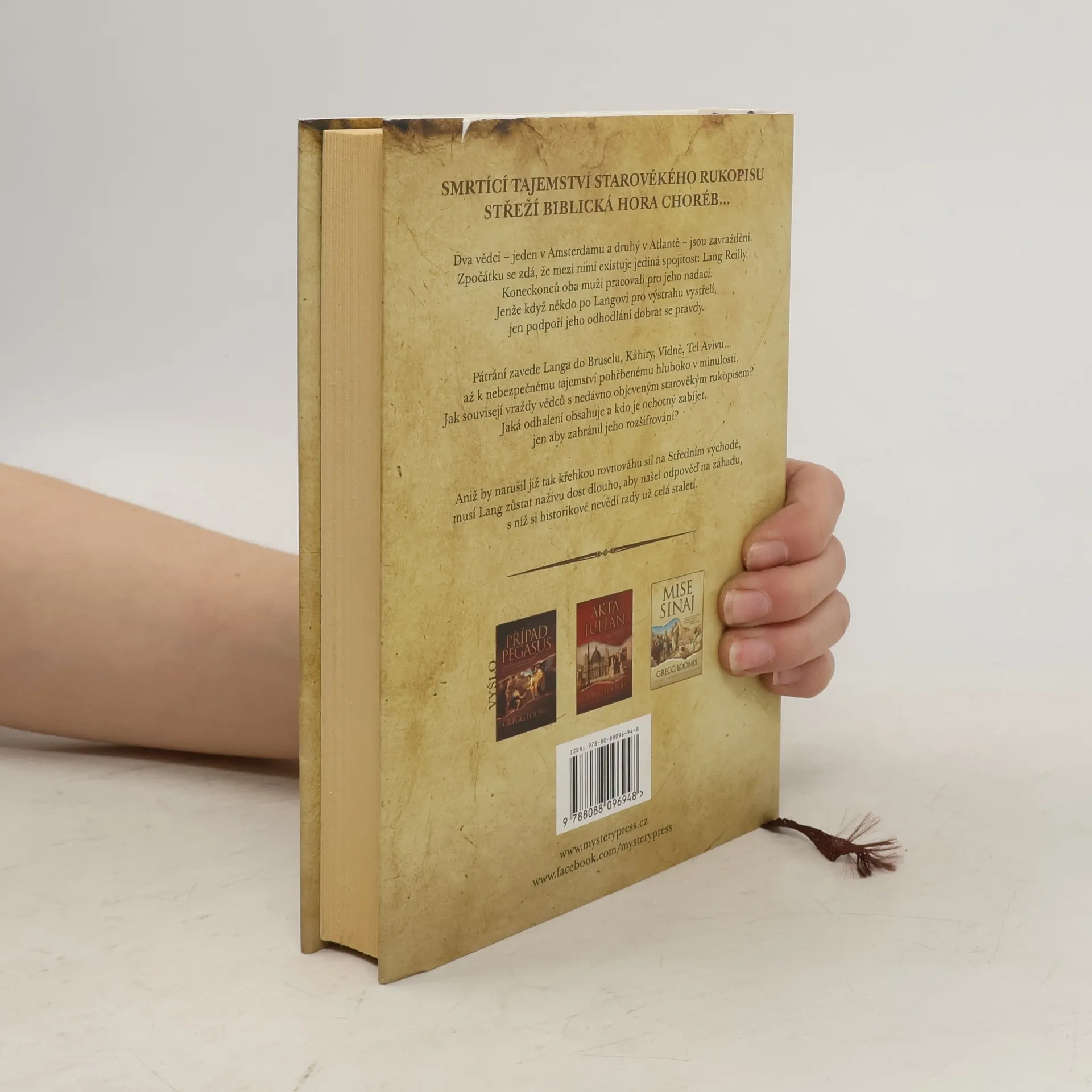 SMRTÍCÍ TAJEMSTVÍ STAROVĚKÉHO RUKOPISU STŘEŽÍ BIBLICKÁ HORA CHORÉB… Dva vědci – jeden v Amsterdamu a druhý v Atlantě – jsou zavražděni. Zpočátku se zdá, že mezi nimi existuje jediná spojitost: Lang Reilly. Koneckonců oba muži pracovali pro jeho nadaci. Jenže když někdo po Langovi pro výstrahu vystřelí, jen podpoří jeho odhodlání dobrat se pravdy. Pátrání zavede Langa do Bruselu, Káhiry, Vídně, Tel Avivu… až k nebezpečnému tajemství pohřbenému hluboko v minulosti. Jak souvisejí vraždy vědců s nedávno objeveným starověkým rukopisem? Jaká odhalení obsahuje a kdo je ochotný zabíjet, jen aby zabránil jeho rozšifrování? Aniž by narušil již tak křehkou rovnováhu sil na Středním východě, musí Lang zůstat naživu dost dlouho, aby našel odpověď na záhadu, s níž si historikové nevědí rady už celá staletí.