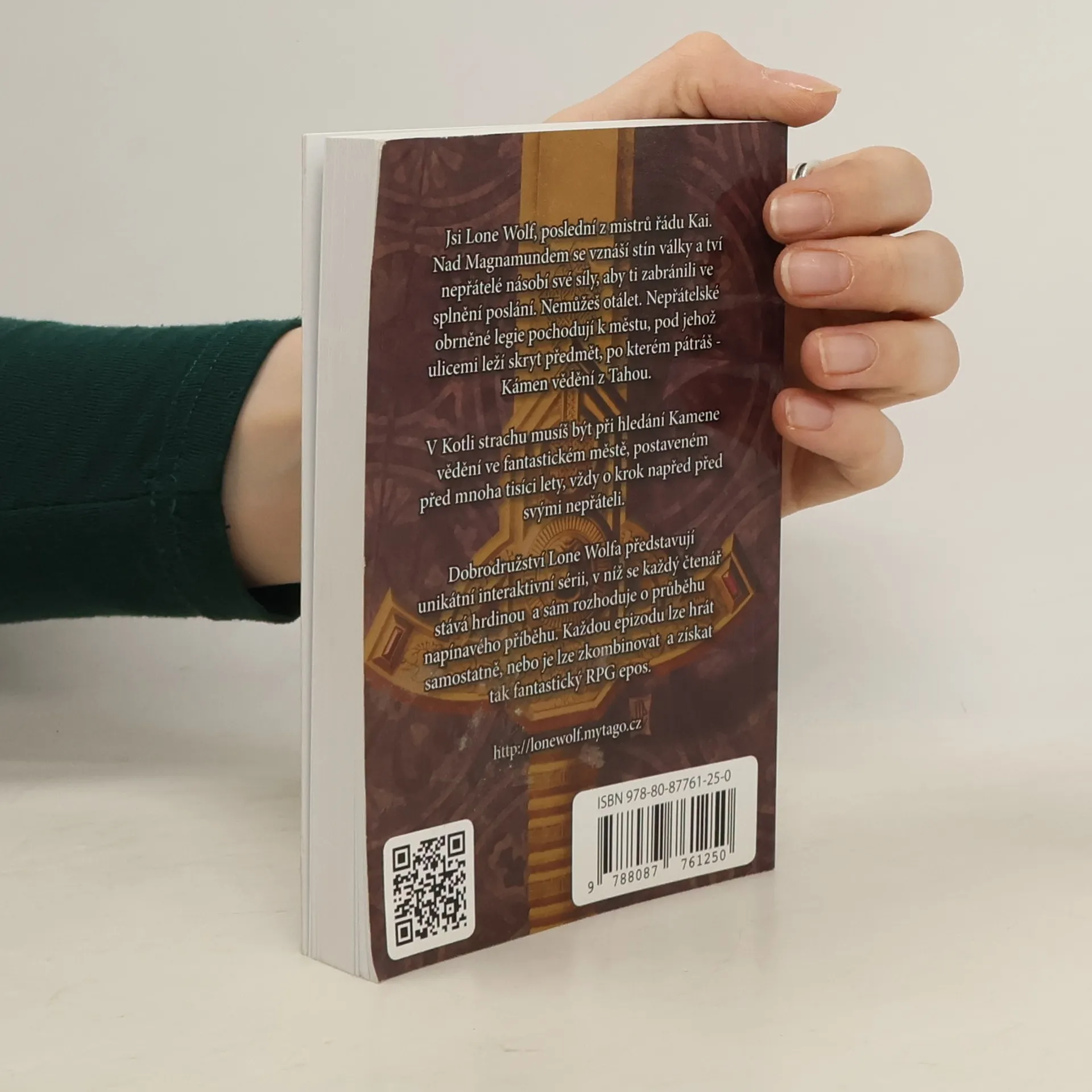 Jsi Lone Wolf, poslední z mistrů řádu Kai. Nad Magnamundem se vznáší stín války a tví nepřátelé násobí své síly, aby ti zabránili ve splnění poslání. Nemůžeš otálet. Nepřátelské obrněné legie pochodují k městu, pod jehož ulicemi leží skryt předmět, po němž pátráš - Kámen vědění z Tahou. V Kotli strachu musíš být při hledání Kamene vědění ve fantastickém městě, postaveném před mnoha tisíci lety, vždy o krok napřed před svými nepřáteli. Dobrodružství Lone Wolfa představují unikátní interaktivní sérii, v níž se každý čtenář stává hrdinou a sám rozhoduje o průběhu napínavého příběhu. Každou epizodu lze hrát samostatně, nebo je lze zkombinovat a získat tak fantastický RPG epos.