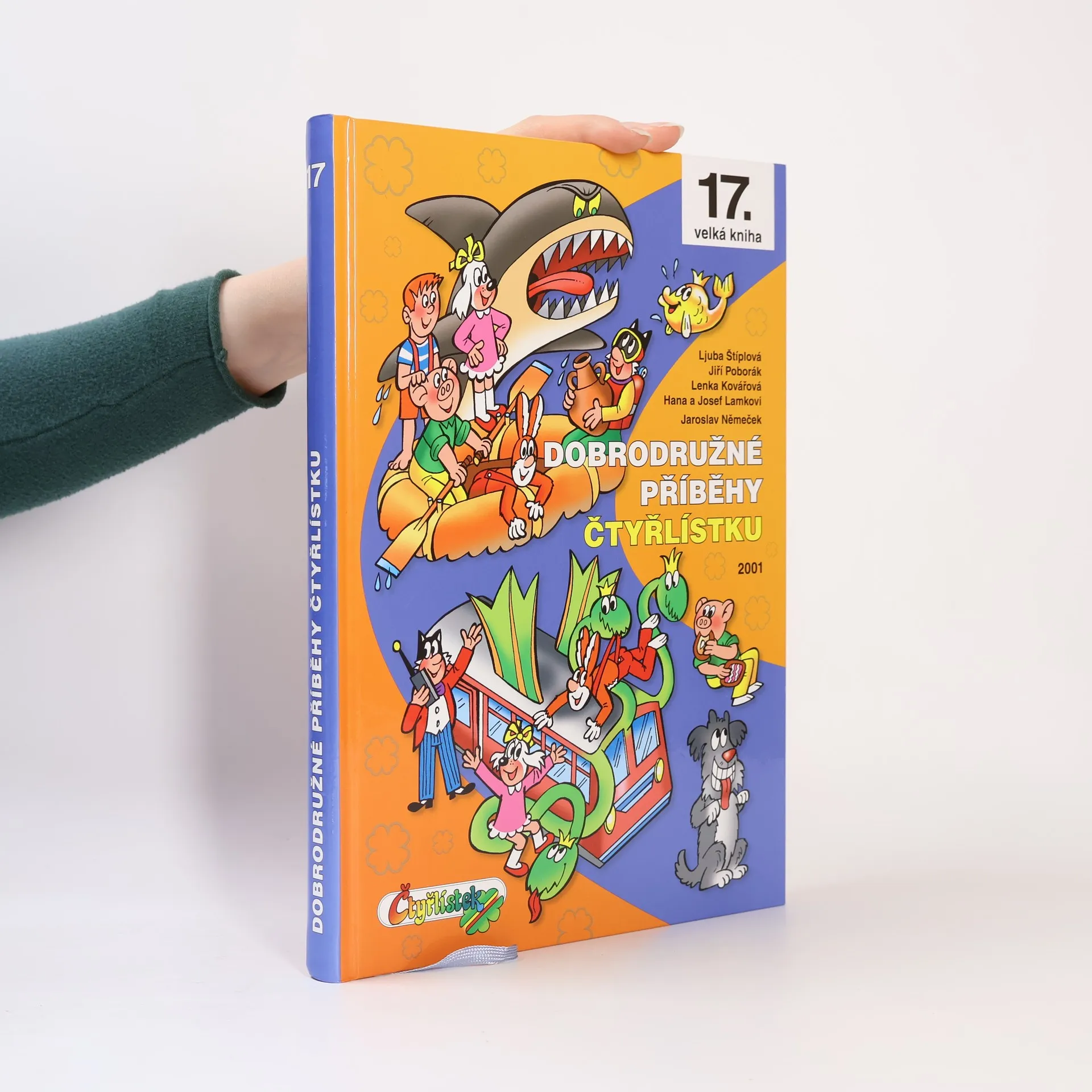 Již sedmnáctá velká kniha této oblíbené edice obsahuje příběhy z čísel 310 až 326 z roku 2001. V prvním příběhu Drak metrák prožije Čtyřlístek napínavou jízdu s drakem, který se promění ve vlak. Trochu popletené pohádky zase napraví v Pohádkové zimě a Brýle mámení odhalí dávno zapomenutou bitvu o Třeskoprsky. Jednoho malého šachového mistra naši čtyři kamarádi naučí, že i sportování má něco do sebe, a spoustu legrace zažijí se zvířátky v příběhu Máme rádi zvířata. Pinďovo neuvážené malování zase přivede na svět samotného čerta. Ve Skoku do neznáma unesou Čtyřlístek mimozemšťané a obr Barnabáš si velice oblíbí Fifinčiny buchty. Dozvíte se také, jak to dopadne, když ježibaba promění Bobíka v kocoura, i jak rozchodit sochy na Velikonočním ostrově. Naši kamarádi budou společně cestovat v čase s dvojčaty z budoucnosti nebo si zatančí na diskotéce s jeskyňkami. A nakonec zachrání Santu Klause v příběhu Vánoce nebudou. Jak je vidět, celá tato kniha je plná těch pravých čtyřlístkových dobrodružství, která můžete prožít společně s naší veselou čtyřkou přátel.