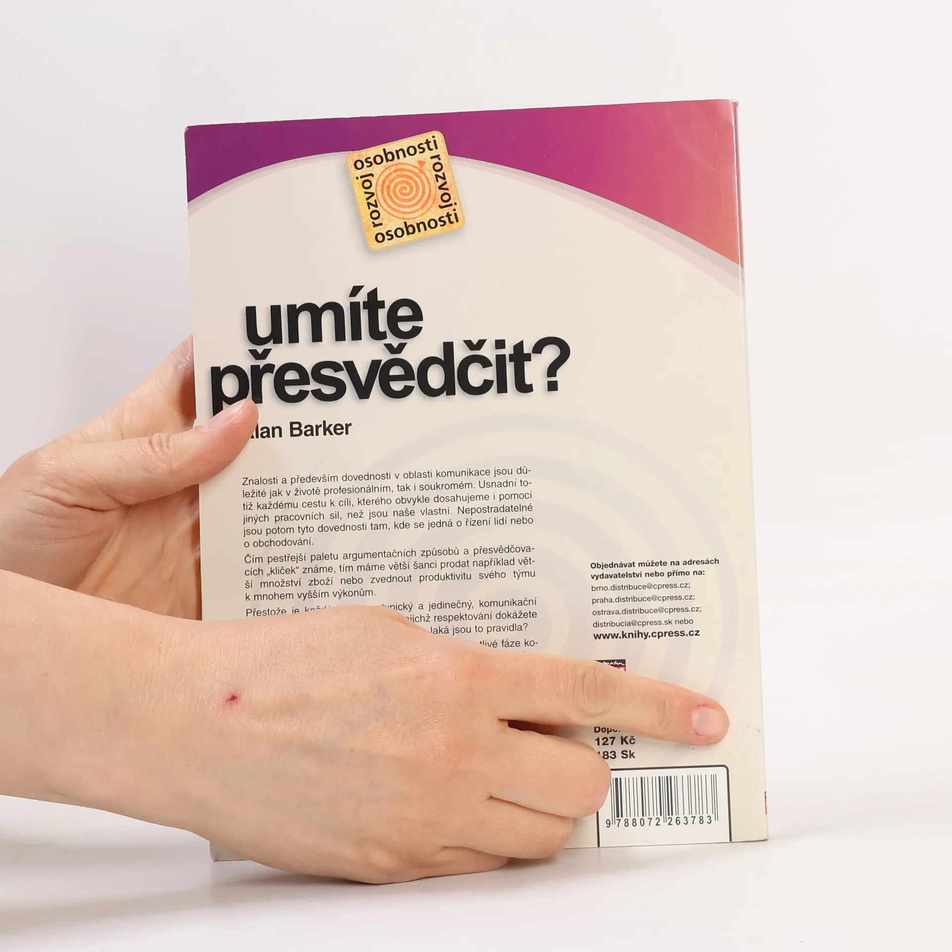 Znalosti a dovednosti v oblasti komunikace jsou důležité jak v životě profesionálním, tak soukromém. Usnadňují každému cestu k cíli. Přímo nepostradatelné jsou pak tyto dovednosti tam, kde se jedná o řízení lidí nebo obchod. Čím pestřejší paletu způsobů argumentace a přesvědčování známe, o to větší šanci máme prodat větší množství zboží nebo zvednout produktivitu týmu k mnohem vyšším výkonům. Přestože je každý rozhovor jedinečný, komunikační proces má své čitelné zákony, při jejichž respektování dokážete přesvědčit mnohem rychleji. Kniha vás naučí: Co je a jak funguje komunikace Příčiny špatného průběhu rozhovoru Sedm způsobů, jak zlepšit komunikaci Čtyři typy rozhovoru Umění klást otázky Schopnost přesvědčit Vedení formálních rozhovorů Atraktivní prezentaci a písemnou komunikaci Alan Barker se dlouhé roky zabývá školením rozvoje komunikačních dovedností a kreativity převážně v podnikatelské sféře a mezi manažery.