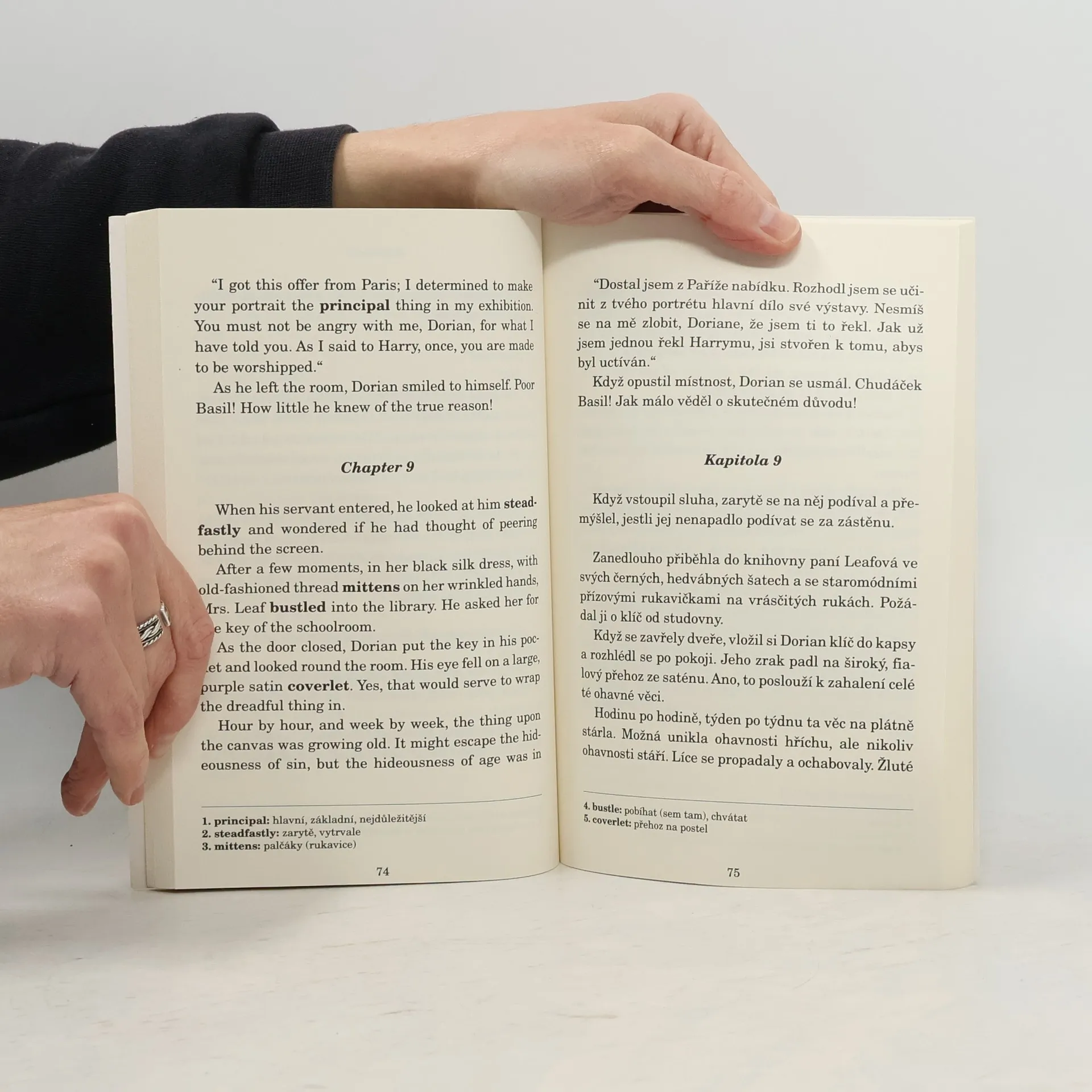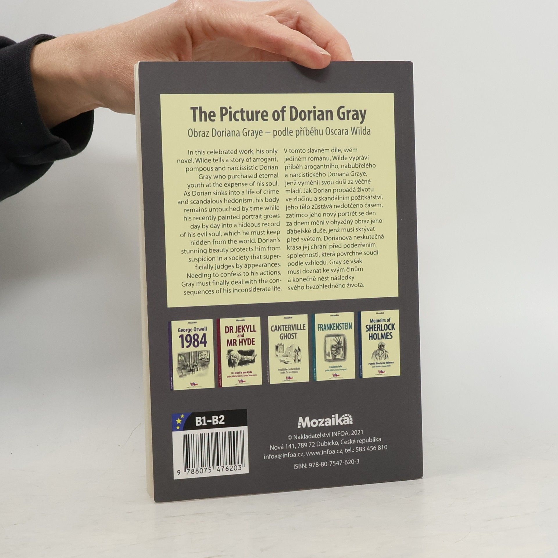 V tomto slavném díle, svém jediném románu, Wilde vypráví příběh arogantního, nabubřelého a narcistického Doriana Graye, jenž vyměnil svou duši za věčné mládí. Jak Dorian propadá životu ve zločinu a skandálním požitkářství, jeho tělo zůstává nedotčeno časem, zatímco jeho nový portrét se den za dnem mění v ohyzdný obraz jeho ďábelské duše, jenž musí skrývat před světem. Dorianova neskutečná krása jej chrání před podezřením společnosti, která povrchně soudí podle vzhledu. Gray se však musí doznat ke svým činům a konečně nést následky svého bezohledného života. Anglicko-český zrcadlový text pro mírně pokročilé In this famous work, his only novel, Wilde tells the story of the arrogant, bloated and narcissistic Dorian Gray, who exchanged his soul for eternal youth. As Dorian succumbs to life in crime and scandalous indulgence, his body remains untouched by time as his new portrait changes day by day into an ugly image of his devilish soul, which he must hide from the world. Dorian's incredible beauty protects him from the suspicion of a society that superficially judges by appearance. However, Gray must confess to his actions and finally bear the consequences of his reckless life. English-Czech mirror text for intermediate students