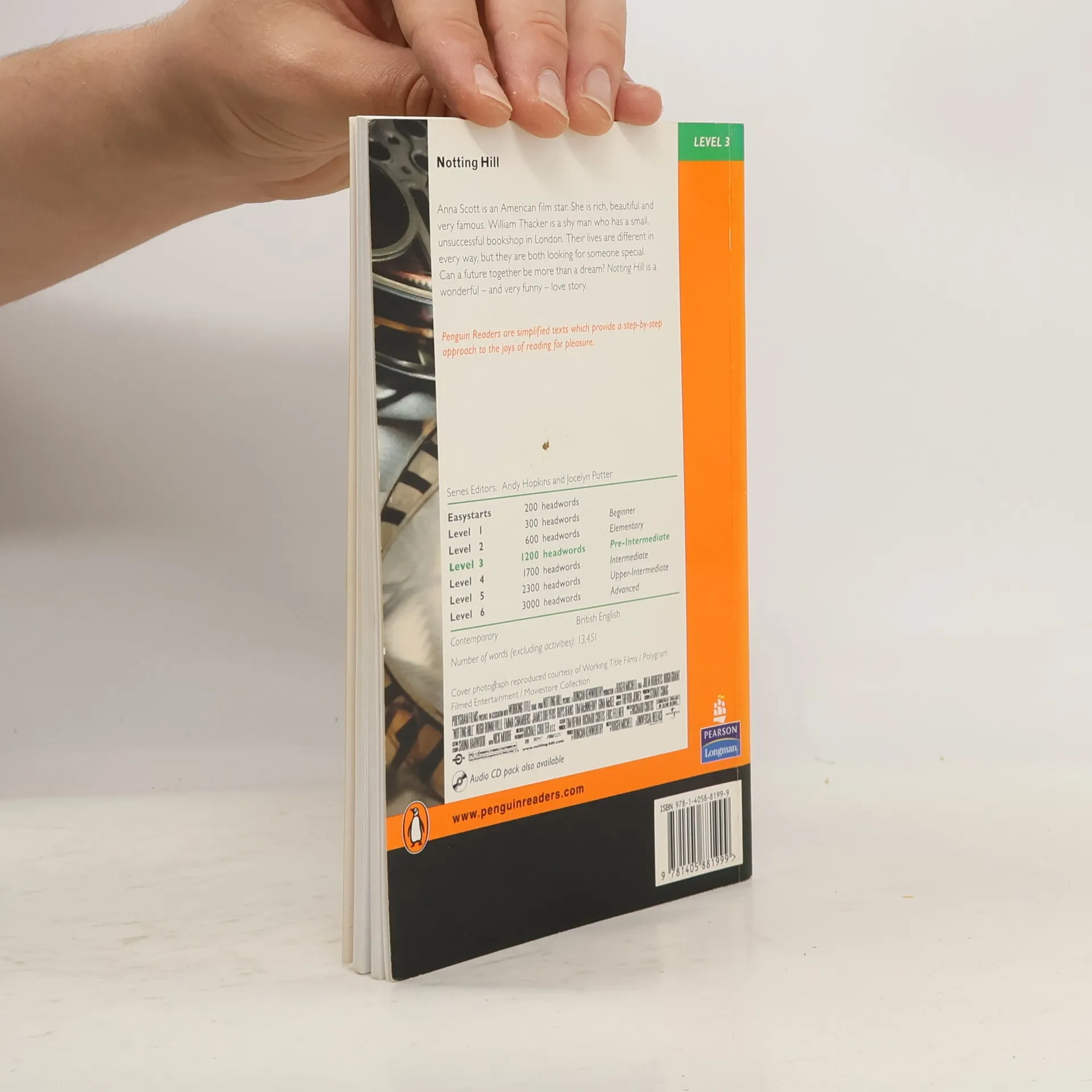 Contemporary / British English Anna Scott is an American film star. She is rich, beautiful and very famous. William Thacker is a shy man who has a small, unsuccessful bookshop in London. Their lives are different in every way, but they are both looking for someone special. Can a future together be more than a dream? Notting Hill is a wonderful - and very funny - love story.