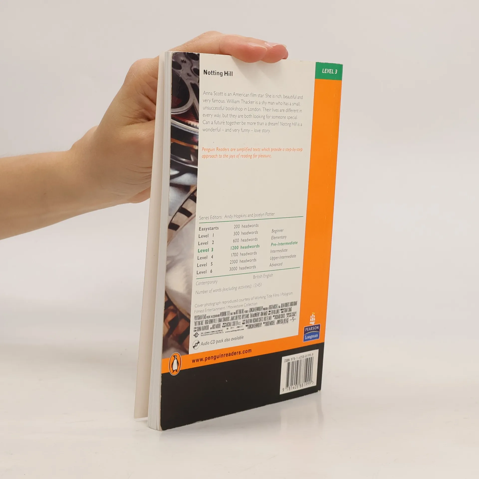 Contemporary / British English Anna Scott is an American film star. She is rich, beautiful and very famous. William Thacker is a shy man who has a small, unsuccessful bookshop in London. Their lives are different in every way, but they are both looking for someone special. Can a future together be more than a dream? Notting Hill is a wonderful - and very funny - love story.