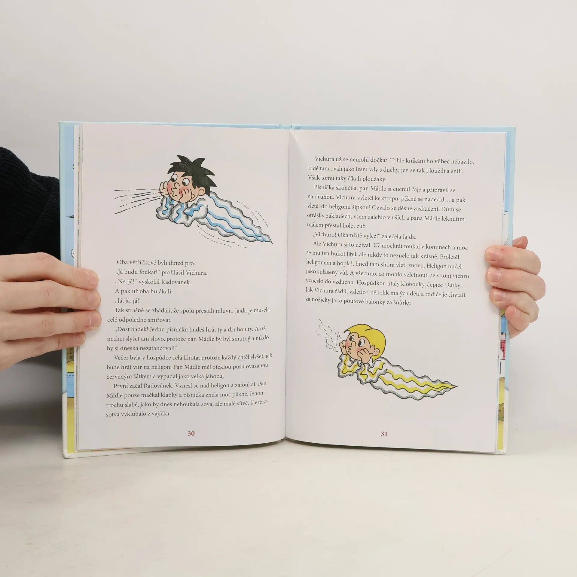 Knížka obsahuje sedm větrných příběhů z oblíbených večerníčků. Rozpustilé pohádky určené především pro předškolní věk. Hezky ilustrovaná. Uprostřed světa je vesnička Větrná Lhota, žijí tam dva bratříci-větrníčci. Větší a divočejší je Vichura a menší, co rád jen houpá obláčky, se jmenuje Radovánek. Přestože jsou ještě malí, dout a lítat umí už pořádně, s větříky je také velká kamarádka