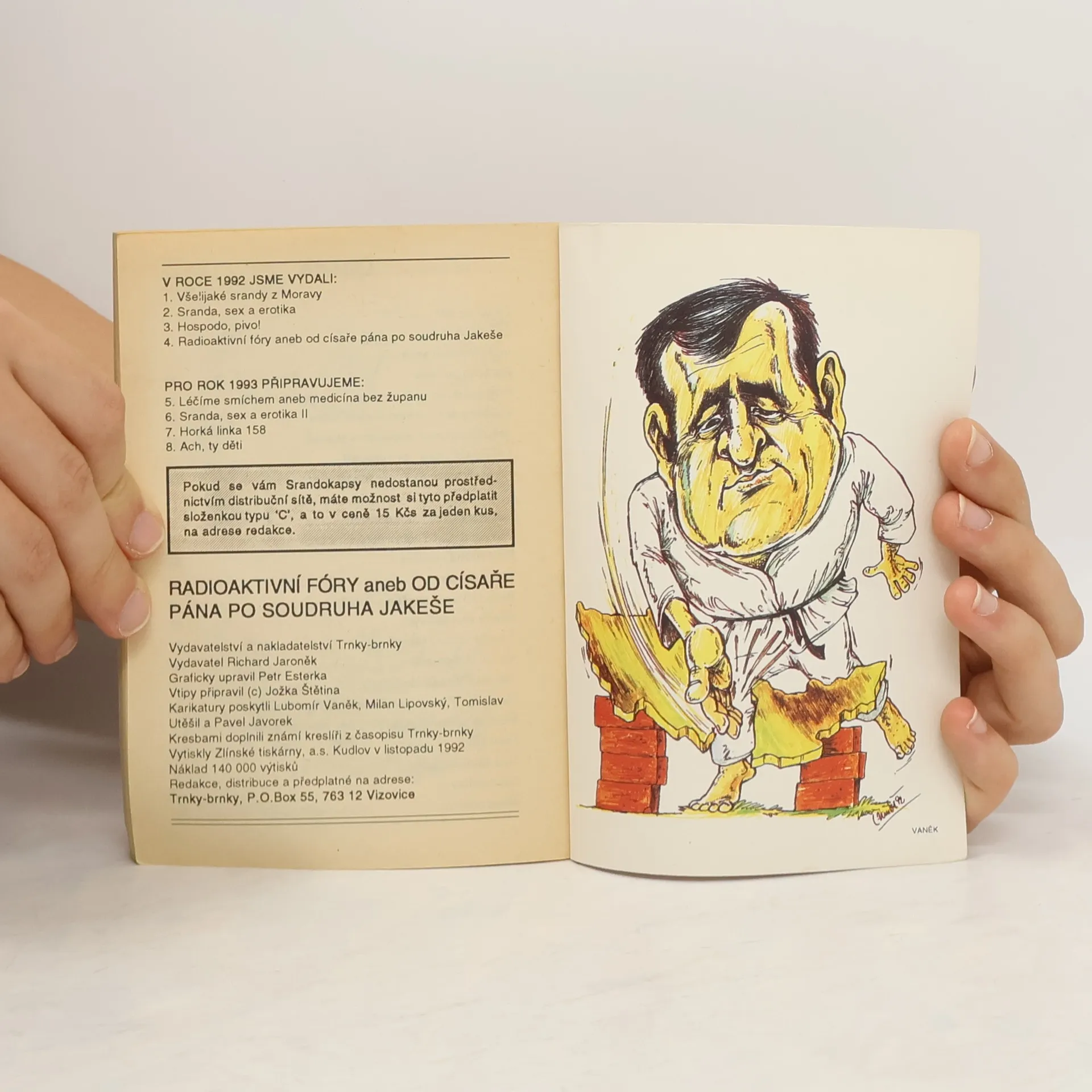 Skladem máme celkem knihy Srandokaps č. 4: Radioaktivní fóry aneb od císaře pána po soudruha Jakeše (1992).