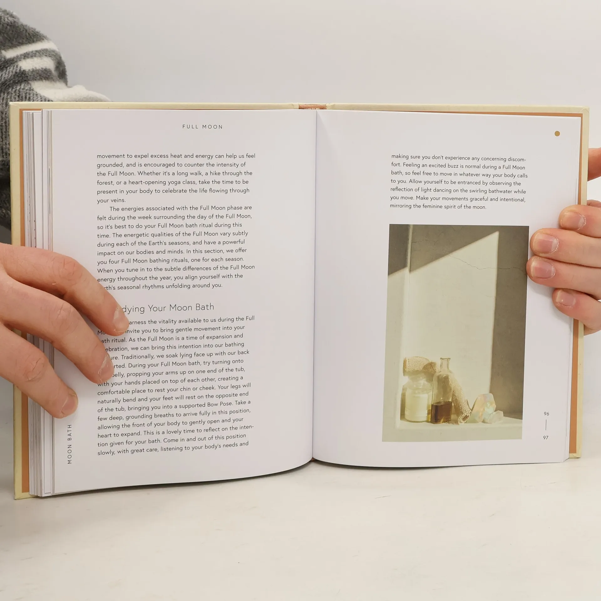 "Organized by moon cycleNew Moon, Waxing Moon, Full Moon, and Waning Moon--each ritual includes a bath recipe featuring healing natural ingredients. Includes affirmations and meditations -- Journaling prompts promote reflection and self-discovery. -- Filled with lush, nature-inspired photography. Brimming with Ayurvedic wisdom and plant-based medicine, Moon Bath is a lovely companion for modern mystics, wellness enthusiasts, and anyone who wants to wash away the stresses of daily life. Bath recipes include ginger and baking soda for detoxification, cacao and rose to cultivate love, eucalyptus and bentonite clay to release negativity, and chamomile and lavender to connect to deep wisdom. This beautiful guide to bathing rituals and bath recipes makes it easy to incorporate calming and enriching self-care practices into everyday life. -- Presented in an enchanting package, making it a great gift. -- Perfect for women who love self-care, meditation, yoga, crystals, and those interested in Ayurveda. -- Add it to the shelf with books like Crystal Muse: Everyday Rituals to Tune In to the Real You by Heather Askinosie and Timmi Jandro; The Spirit Almanac: A Modern Guide to Ancient Self-Care by Emma Loewe and Lindsay Kellner; and Lunar Abundance: Cultivating Joy, Peace, and Purpose Using the Phases of the Moon by Ezzie Spencer." -- Goodreads.com