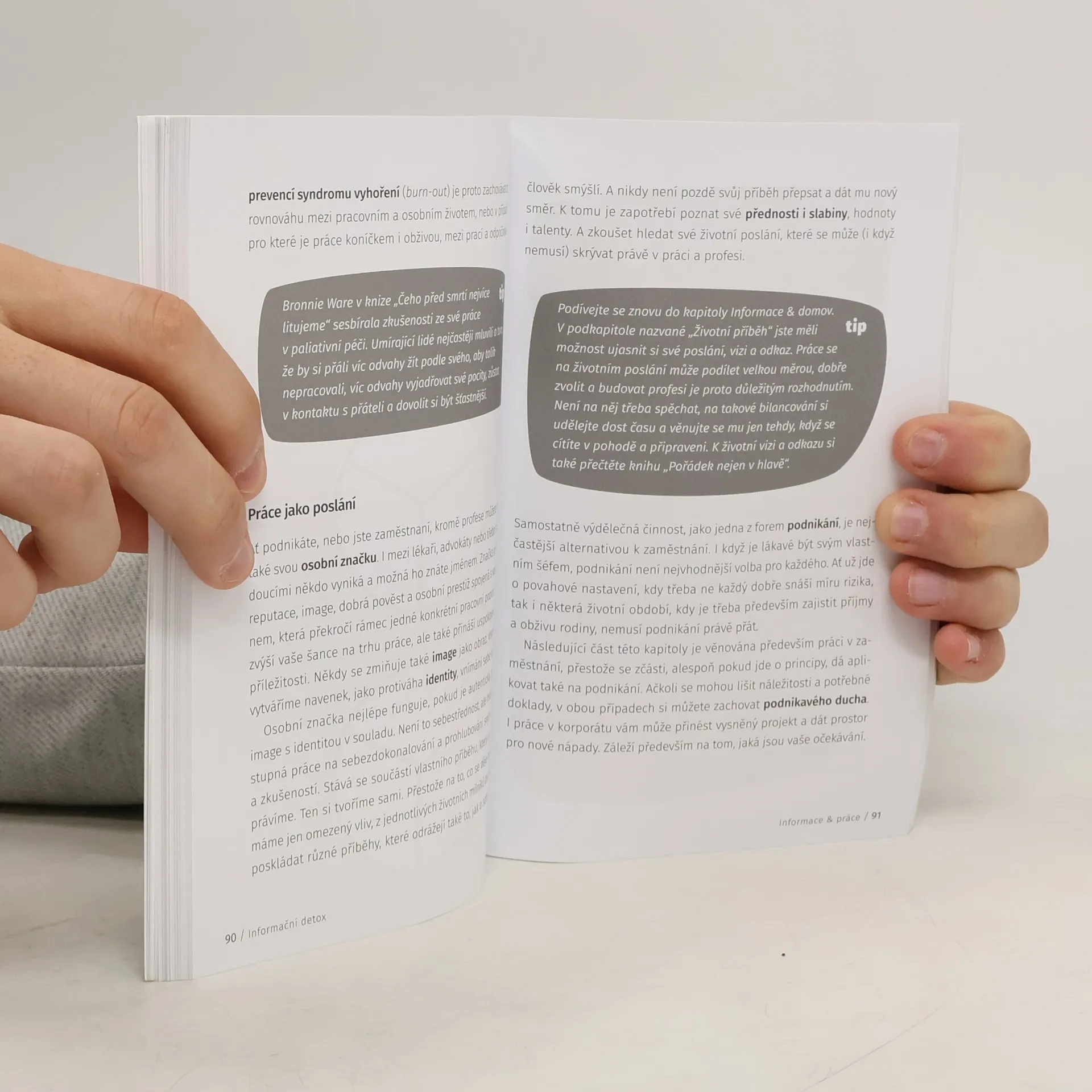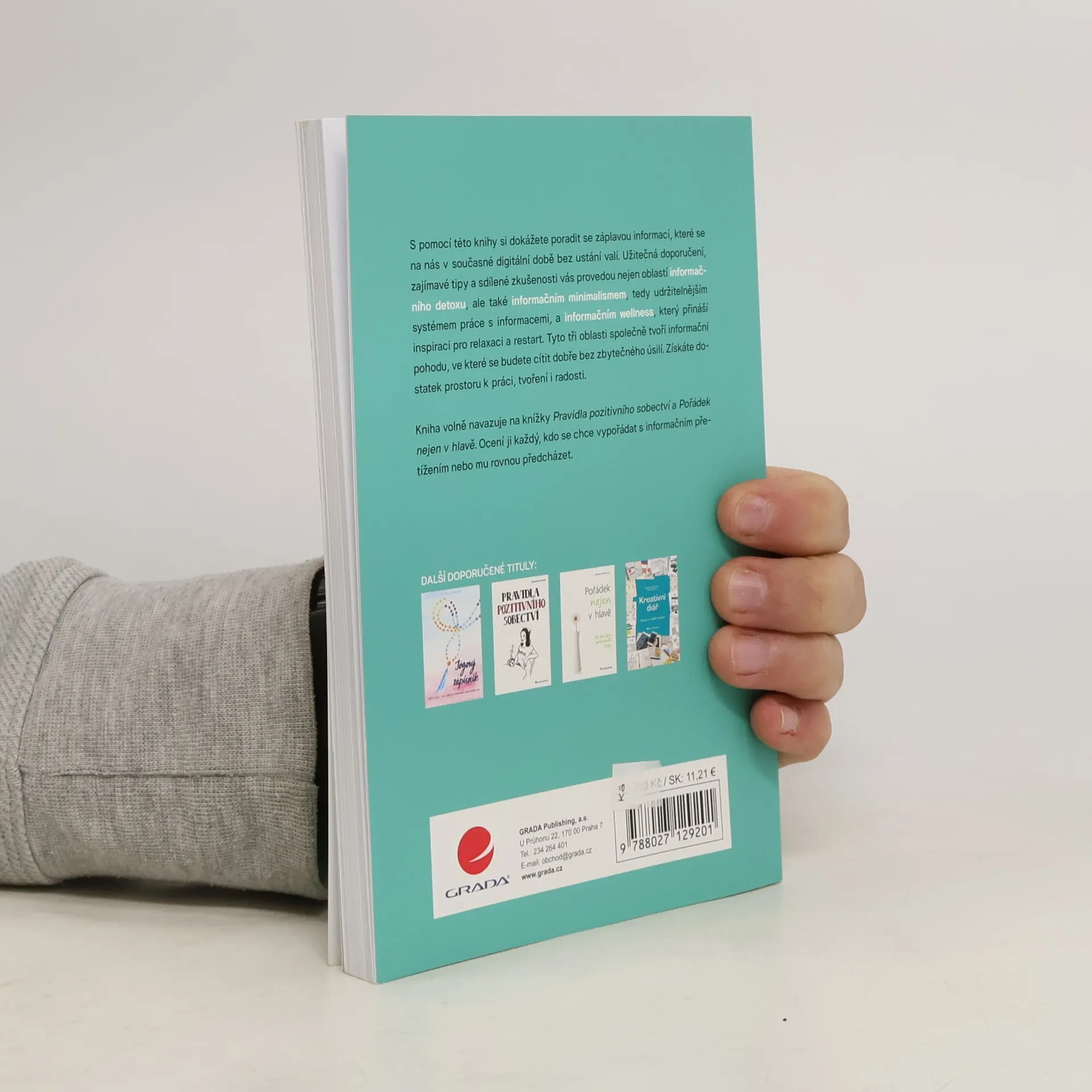 S pomocí této knihy si dokážete poradit se záplavou informací, které se na nás v současné digitální době bez ustání valí. Užitečná doporučení, zajímavé tipy a sdílené zkušenosti vás provedou nejen oblastí informačního detoxu, ale také informačním minimalismem, tedy udržitelnějším systémem práce s informacemi, a informačním wellness, který přináší inspiraci pro relaxaci a restart. Tyto tři oblasti společně tvoří informační pohodu, ve které se budete cítit dobře bez zbytečného úsilí. Získáte dostatek prostoru k práci, tvoření i radosti. Kniha volně navazuje na knížky „Pravidla pozitivního sobectví“ a „Pořádek nejen v hlavě“. Ocení ji každý, kdo se chce vypořádat s informačním přetížením nebo mu rovnou předcházet.