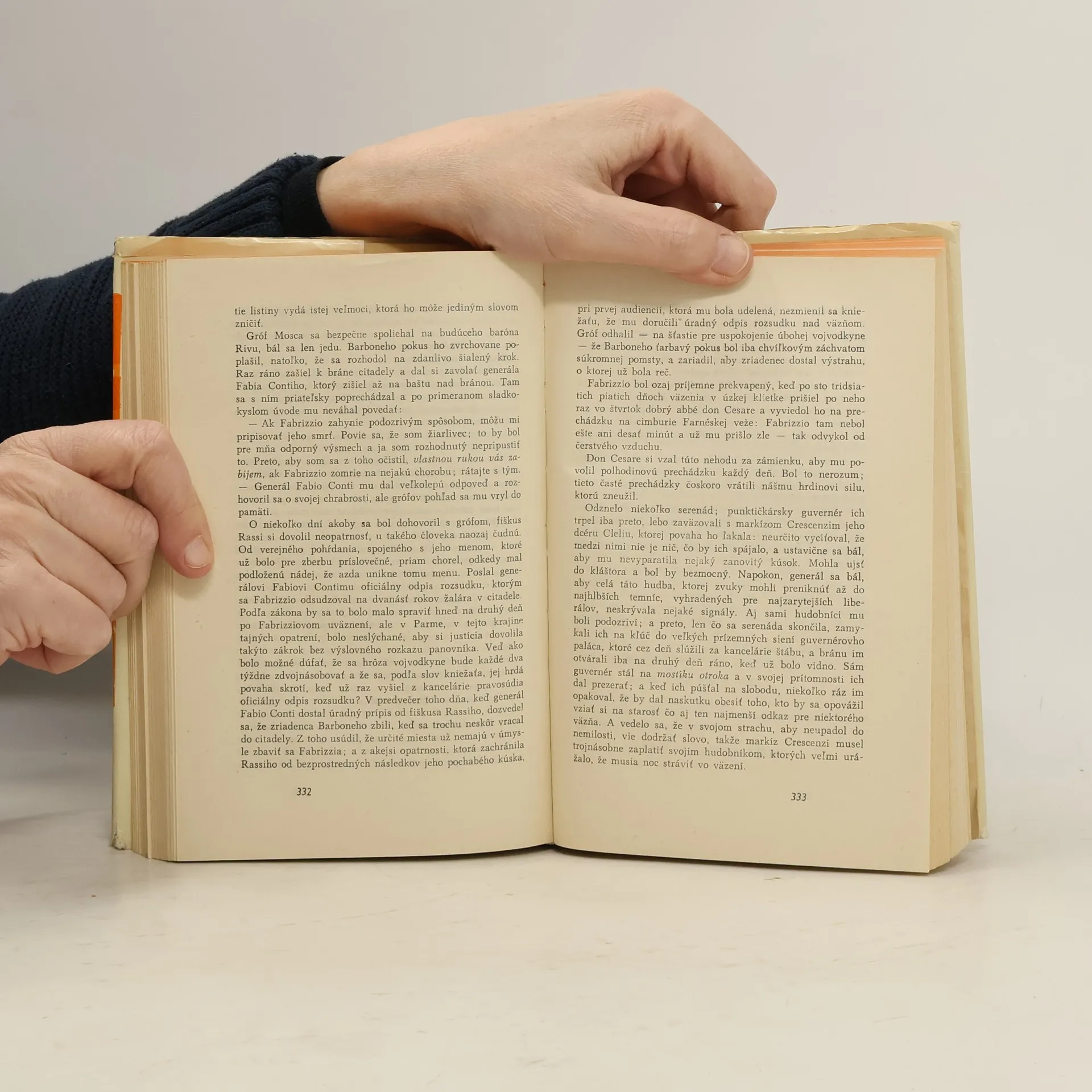 Dobrodružný román, ktorý patrí k základným realistickým dielam v európskej literatúre. Hrdinom je Fabrice, ktorý nemôže žiť slobodne, musí sa celý život pokrytecky prispôsobovať. Chce sa pripojiť k Napoleonovi, zablúdi až k Waterloo, po nešťastnej bitke sa uchýli k svojej tete, vojvodkyniSanseverine do Parmy. Keď zabije soka v láske, je uväznený v parmskej veži. Fabrica skľučuje ovzdušie intríg a strachu, príde o svoju lásku Cléliu. Aby si zachránil život, nájde únik v kláštore... 3. slovenské vydanie.
