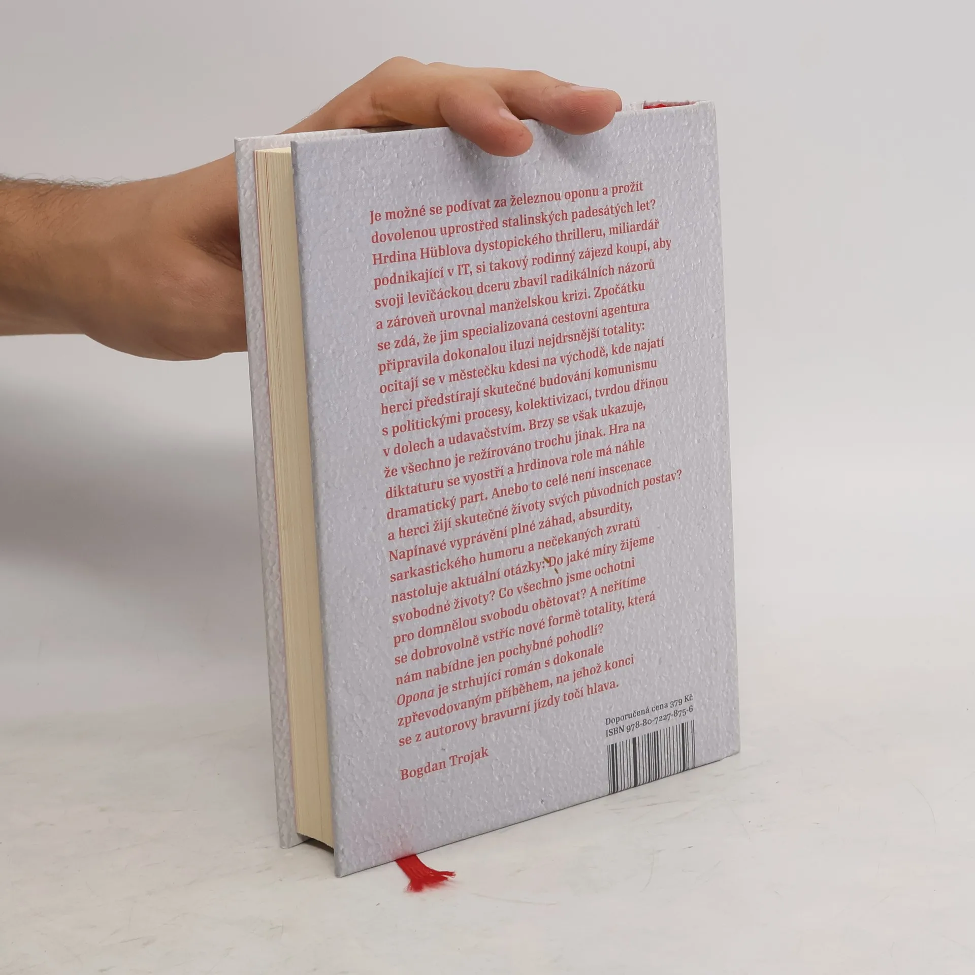 Román Opona je existenciální dystopií s prvky mysteriózního thrilleru. Hlavní hrdina — úspěšný majitel firmy zabývající se umělou inteligencí — si objedná rodinný zájezd do doby nejtužšího stalinismu, aby svou dceru vyléčil z jejího levičáctví. Pořádající agentura slibuje zažít 50. léta, tedy politické procesy, kolektivizaci zemědělství, otrockou dřinu v dolech i budovatelské divadelní hry. Enkláva diktatury leží v městečku kdesi na východě, obydleném pouze najatými herci a komparsisty. Hra na minulost se však postupně vyostřuje a z městečka se stává past. Vyprávění plné absurdity, sarkasmu a zvratů vyvolává otázky: Kam je člověk ochoten totalitě ustoupit? Co je schopen obětovat pro vlastní přežití? A nakolik vůbec touží po svobodě? Opona v sobě spojuje silný příběh se závažným tématem a kořením je jemně dávkovaný vtip. Opona je druhou knihou Ondřeje Hübla. Debutoval povídkami Hod mrtvou labutí (2018) s originálními příběhy i smyslem pro černý humor.
