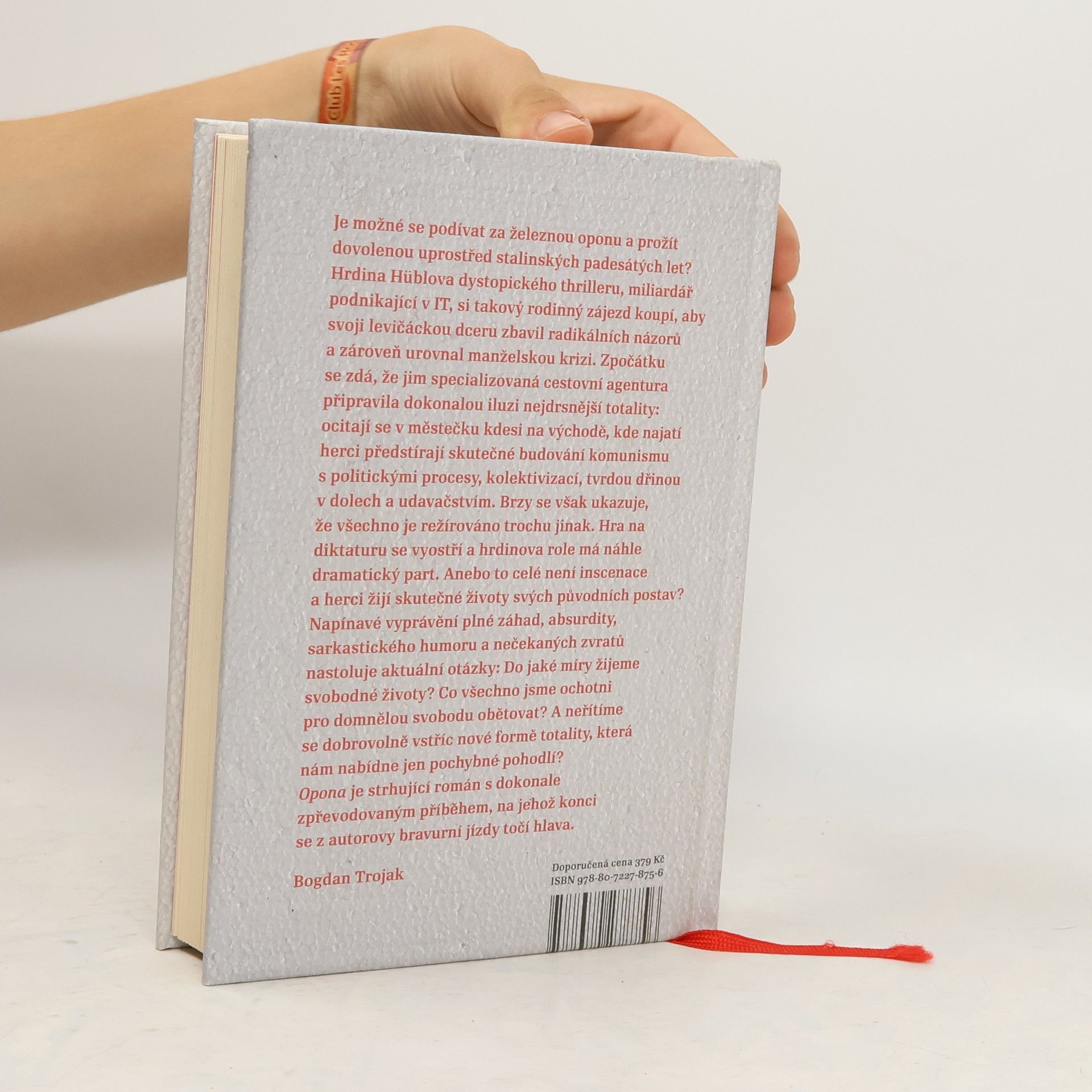 Román Opona je existenciální dystopií s prvky mysteriózního thrilleru. Hlavní hrdina — úspěšný majitel firmy zabývající se umělou inteligencí — si objedná rodinný zájezd do doby nejtužšího stalinismu, aby svou dceru vyléčil z jejího levičáctví. Pořádající agentura slibuje zažít 50. léta, tedy politické procesy, kolektivizaci zemědělství, otrockou dřinu v dolech i budovatelské divadelní hry. Enkláva diktatury leží v městečku kdesi na východě, obydleném pouze najatými herci a komparsisty. Hra na minulost se však postupně vyostřuje a z městečka se stává past. Vyprávění plné absurdity, sarkasmu a zvratů vyvolává otázky: Kam je člověk ochoten totalitě ustoupit? Co je schopen obětovat pro vlastní přežití? A nakolik vůbec touží po svobodě? Opona v sobě spojuje silný příběh se závažným tématem a kořením je jemně dávkovaný vtip. Opona je druhou knihou Ondřeje Hübla. Debutoval povídkami Hod mrtvou labutí (2018) s originálními příběhy i smyslem pro černý humor.