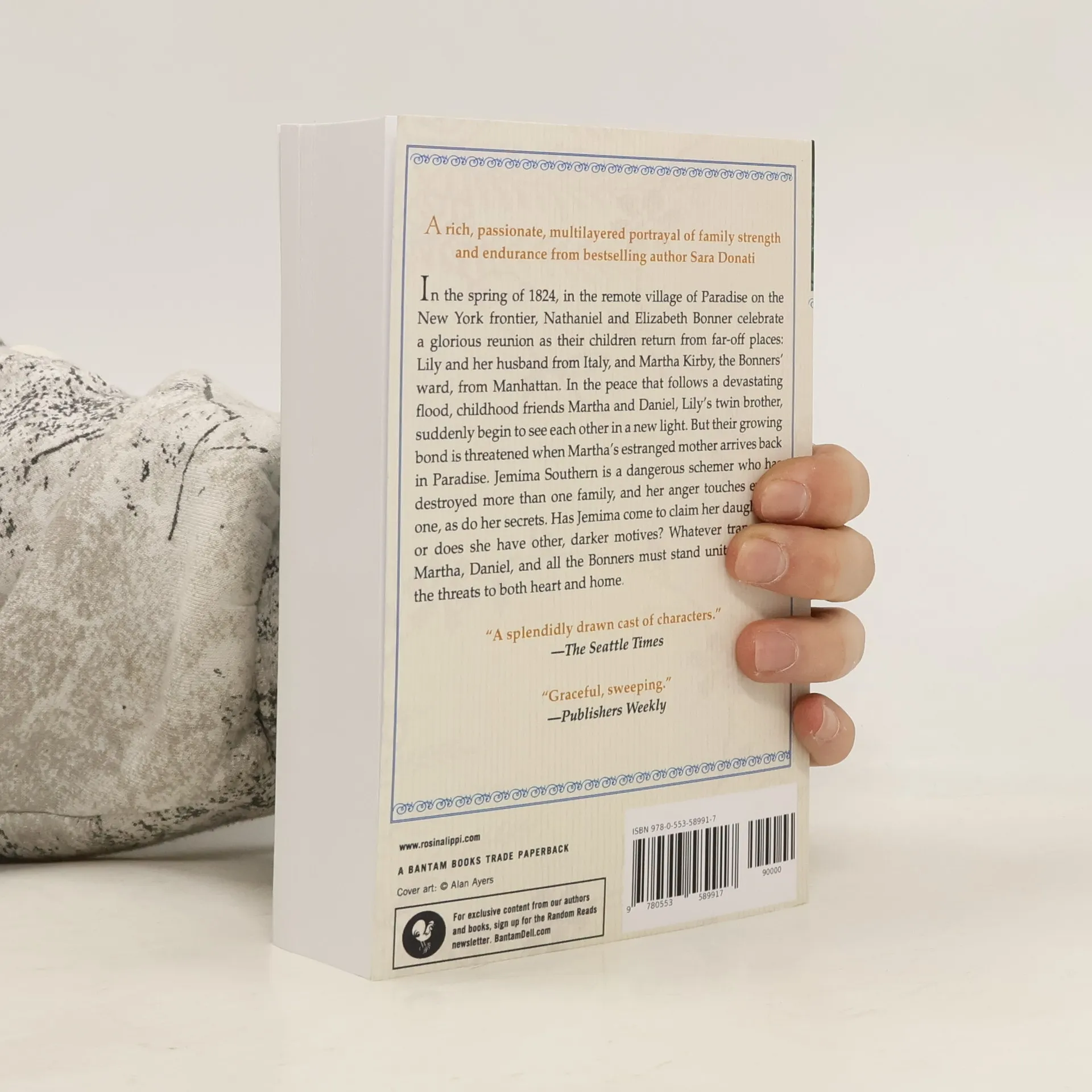 A rich, passionate, multilayered portrayal of family strength and endurance from bestselling author Sara Donati In the spring of 1824, in the remote village of Paradise on the New York frontier, Nathaniel and Elizabeth Bonner celebrate a glorious reunion as their children return from far-off places: Lily and her husband from Italy, and Martha Kirby, the Bonners’ ward, from Manhattan. In the peace that follows a devastating flood, childhood friends Martha and Daniel, Lily’s twin brother, suddenly begin to see each other in a new light. But their growing bond is threatened when Martha’s estranged mother arrives back in Paradise. Jemima Southern is a dangerous schemer who has destroyed more than one family, and her anger touches everyone, as do her secrets. Has Jemima come to claim her daughter—or does she have other, darker motives? Whatever transpires, Martha, Daniel, and all the Bonners must stand united against the threats to both heart and home.