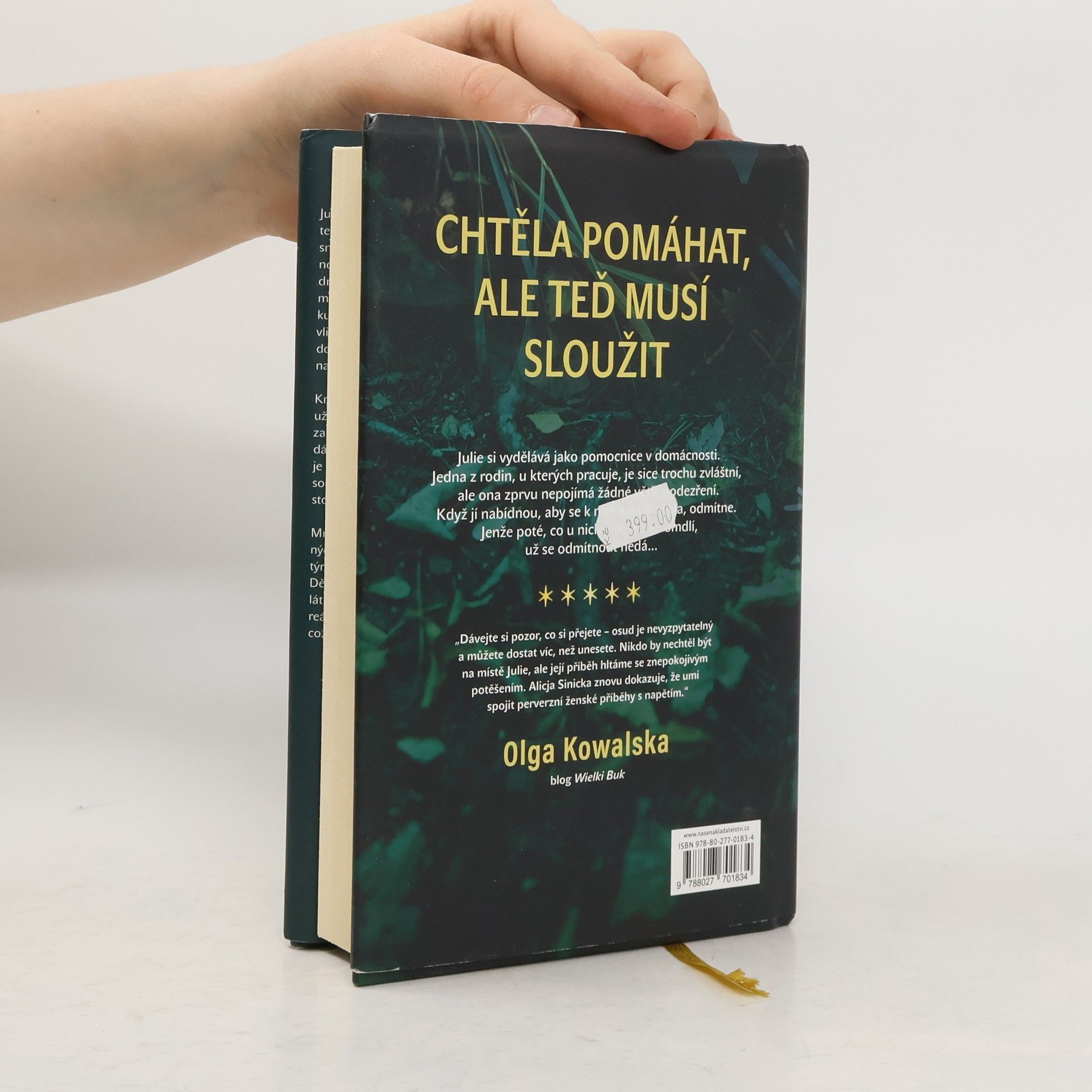Julia, hlavní hrdinka románu polské spisovatelky Alice Sinické, je mladá žena se spoustou snů a cílů, která si přivydělává úklidem domácností. Pořádek je její osobní vášní. Jednoho dne nastoupí k výkonu své profese do vily manželů Borewských. Rodinu tvoří poněkud zvláštní, tajemná žena Maria, její muž Mikuláš, vlivný advokát, posedlý středověkem, a také dospělý syn Kacper, spisovatel, který pracuje na svém novém románu. Krátce po nástupu dávají Borewští Julii návrh na užší spolupráci a společné bydlení. Ta jej zprvu zavrhuje. Poté, co při výkonu své práce ve vile znenadání omdlí, se však všechno změní. Z návrhu je nabídka, která se neodmítá. Julia se stává součástí strašlivé hry, kdy se boj o vlastní důstojnost a svobodu změní v boj o holý život. Mrazivý thriller Alice Sinické, plný nečekaných zvratů a napětí, přenese čtenáře do světa týrané ženy, zoufale bojující o zvrácení svého zlého osudu. Děj tohoto dramatického příběhu o manipulátorech a jejich oběti autorka zasadila do reálných kulis svého rodného Dolního Slezska, což pocit autenticity ještě umocňuje.