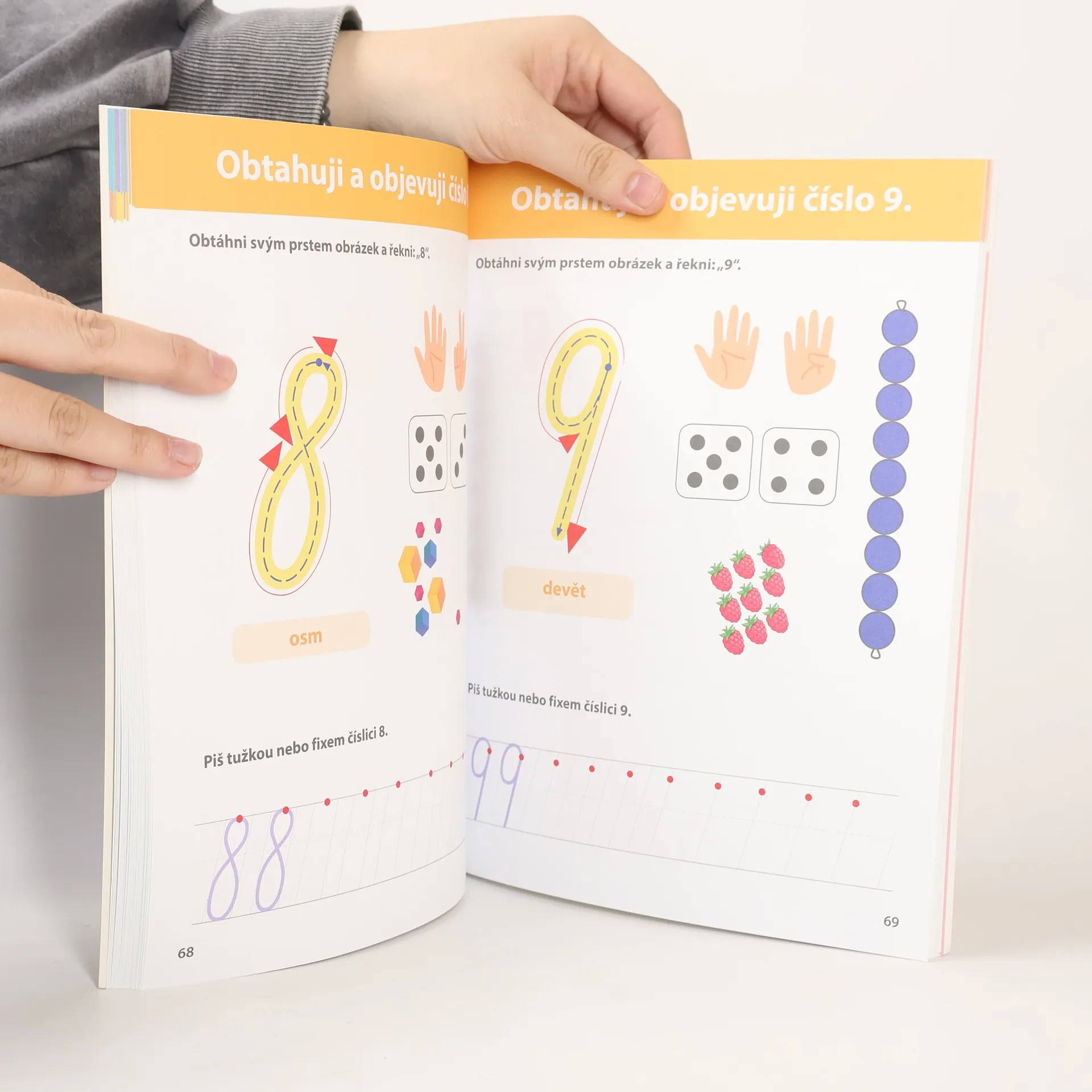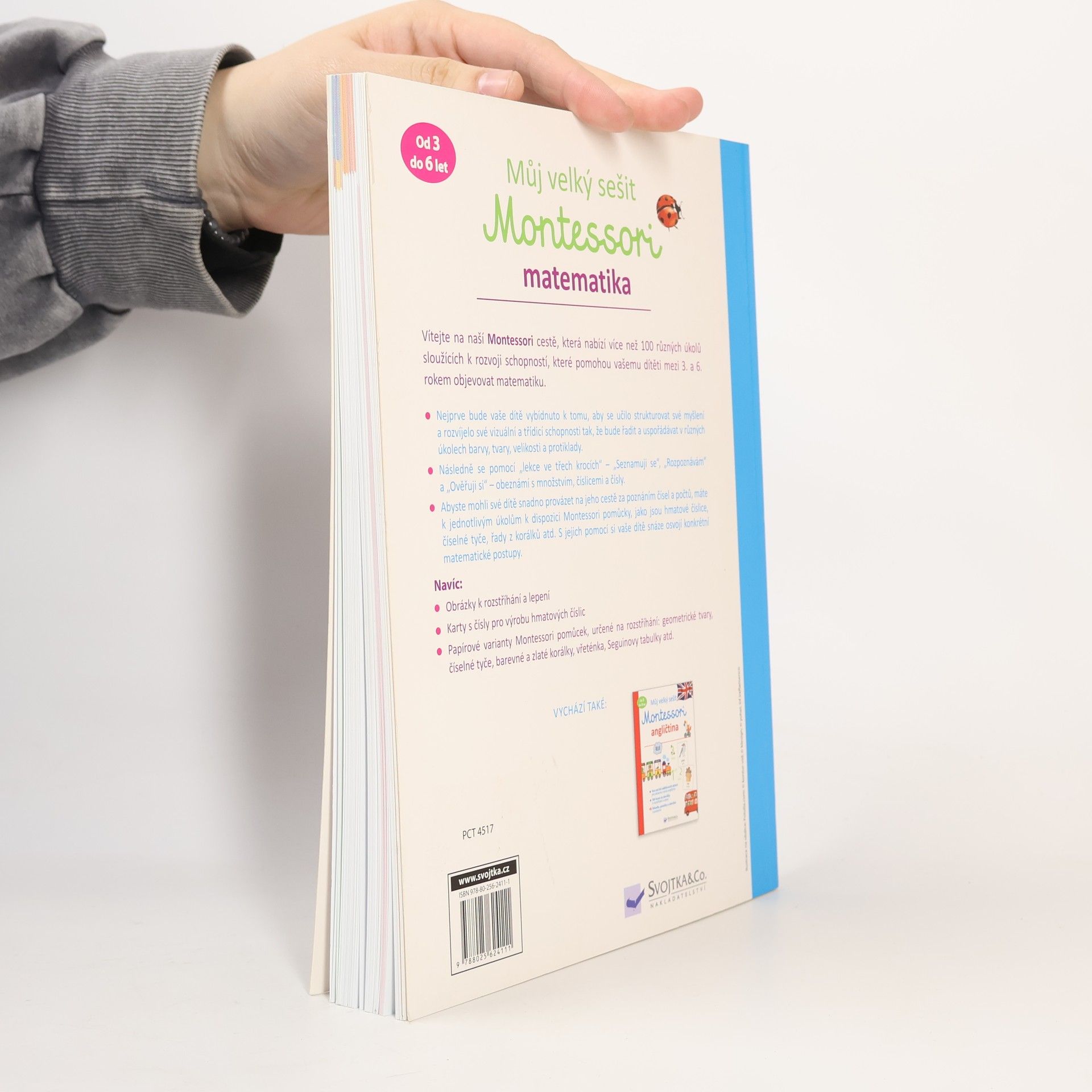 Kniha nabízí více než 100 různých úkolů sloužících k rozvoji schopností, které pomohou vašemu dítěti mezi 3. a 6. rokem objevovat matematiku. Nejprve bude dítě vybídnuto k tomu, aby se učilo strukturovat své myšlení a rozvíjelo své vizuální a třídící schopnosti tak, že bude řadit a uspořádávat v různých úkolech barvy, tvary, velikosti a protiklady. Následně se pomocí "lekce ve třech krocích" obeznámí s množstvím, číslicemi a čísly. Abyste mohli své dítě snadno provázet na jeho cestě za poznáním čísel a počtů, máte k jednotlivým úkolům k dispozici Montessori pomůcky. S jejich pomocí si vaše dítě snáze osvojí konkrétní matematické postupy. Kniha obsahuje obrázky k rozstříhání a lepení, karty s čísly pro výrobu hmatových číslic, geometrické tvary, číselné tyče, barevné a zlaté korálky, vřeténka, Seguinovy tabulky a další materiál.