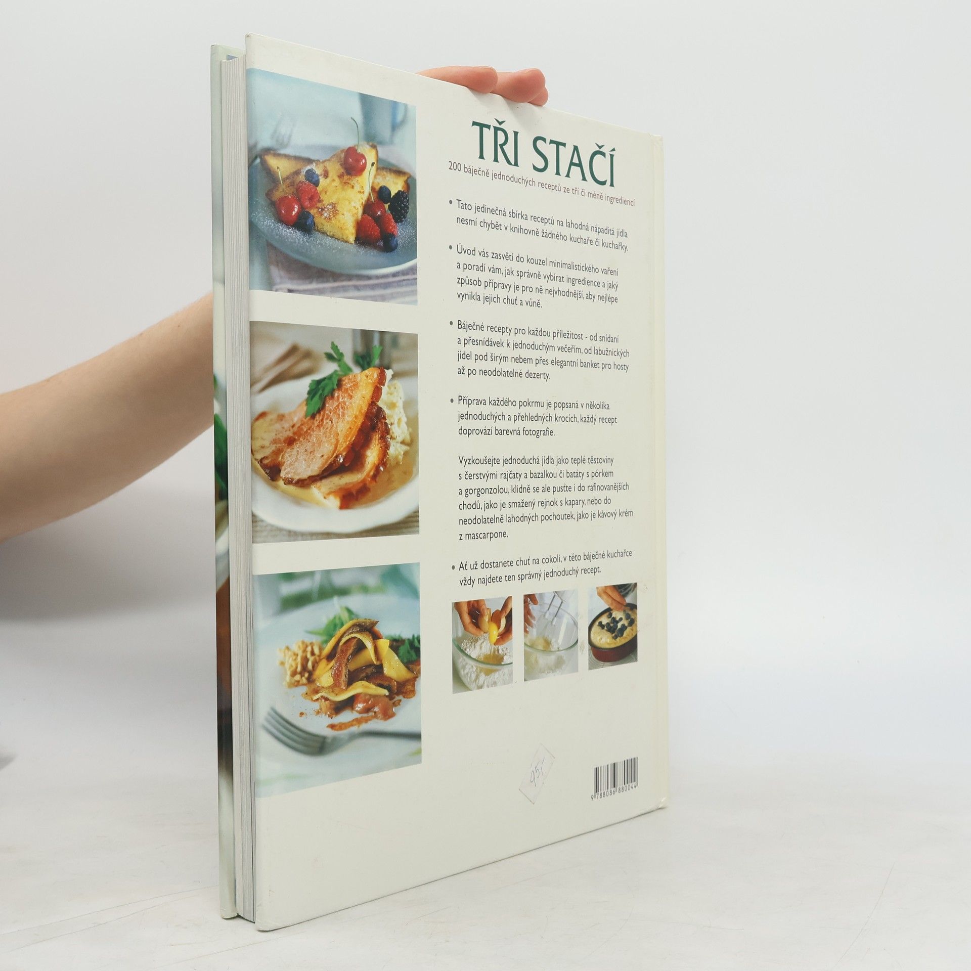 Už nikdy vás žádná návštěva nezaskočí a už nikdy nebudete muset složitě přemýšlet, jestli máte doma všechny potřebné suroviny Naše nevšední kuchařka TŘI STAČÍ vám poradí, jak si zásobit spíž, aby vám už nikdy nic nechybělo a napříště vám stačilo dokoupit ke každému jídlu pouhé tři ingredience, ze kterých zvládnete připravit mnoho skvělých chodů. Z nich pak jednoduše poskládáte vydatnou snídani, rychlý oběd i slavnostní večeři o několika chodech. Najdete tu recepty na rychlá jídla, která oceníte v časové tísni, ale i na vynikající obědy či večeře, na které budete sice potřebovat o něco více času, ale zato si vy i vaši blízcí báječně pochutnáte.
