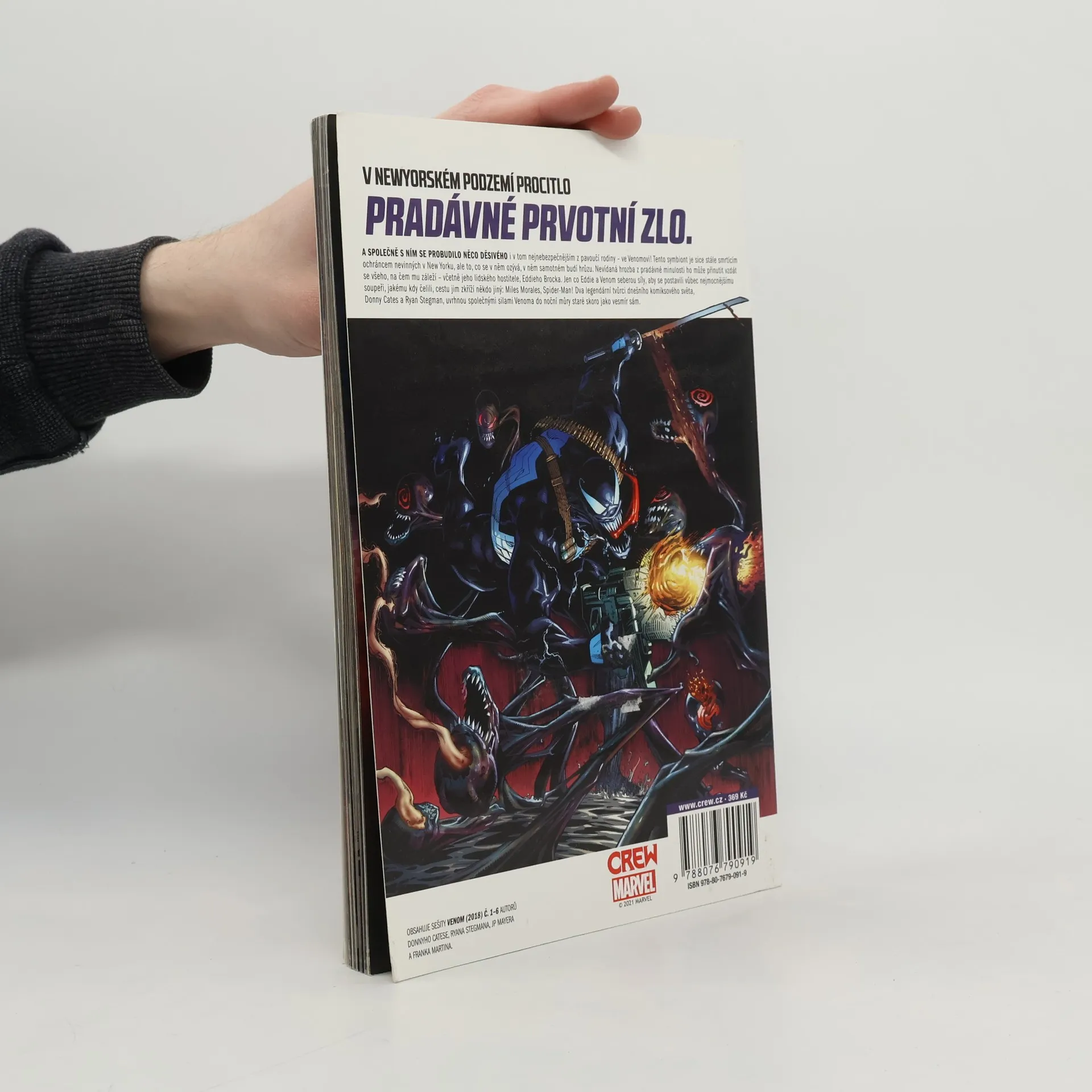 V NEWYORSKÉM PODZEMÍ PROCITLO PRASTARÉ PRVOTNÍ ZLO. A SPOLEČNĚ S NÍM PROCITLO NĚCO SROVNATELNĚ ZLÉHO i v nejhanebnějším ze snovačů pavučin – ve Venomovi! Tento symbiont nadále zůstává smrtícím ochráncem nevinných v New Yorku, dříve nevídaná hrozba ho však může přinutit vzdát se všeho, co je mu drahé – včetně jeho lidského hostitele, Eddieho Brocka. Jen co Eddie a Venom seberou síly, aby se postavili vůbec nejmocnějšímu soupeři, jakému kdy čelili, do cesty se jim postaví někdo jiný: Miles Morales, Spider-Man! Dva nejhustší tvůrci dnešního komiksového světa, Donny Cates a Ryan Stegman, uvrhnou společnými silami Venoma do noční můry staré skoro jako vesmír sám. OBSAHUJE SEŠITY VENOM (2018) č. 1–6 AUTORŮ DONNYHO CATESE, RYANA STEGMANA, JP MAYERA A FRANKA MARTINA.