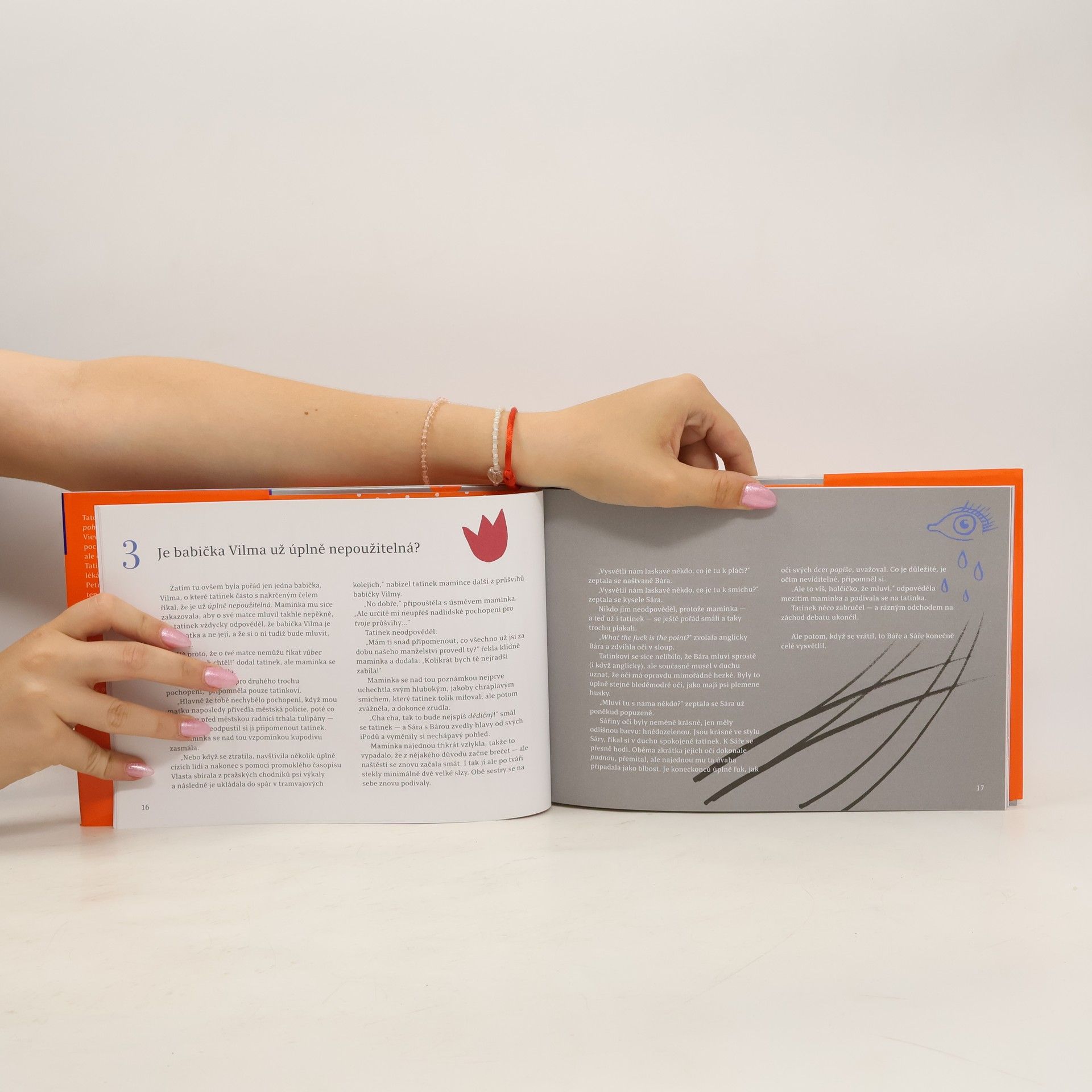 Vychází 19.10.2017 - velký knižní čtvrtek. Volné pokračování knížky Krátké pohádky pro unavené rodiče, která vyšla již před deseti lety. Za tu dobu se pochopitelně pár věcí změnilo: Sáře nejsou čtyři, ale čtrnáct, a Báře neméně kritických dvanáct. Tatínek je ale pořád známý herec a maminka stále lékárnice. Jak si možná vzpomínáte, dědeček Petr už zemřel, protože měl v břiše nádor jako ten tygr v pražské zoo. Co ale nevíte, je, že babička Vilma dostala Alzheimerovu nemoc, při které člověk často netrefí domů, schovává klíče do polévky nebo zapaluje záclony, aby lépe viděl na luštění křížovek. Tatínek je z podobných babiččiných příhod moc nešťastný. Když ale chtěl babičku odvézt do nemocnice pro staré lidi, maminka se nadechla a řekla, že je to zatím jediná babička Sáry a Báry, takže si ji musíme ještě minimálně sedm měsíců doma nechat. Tatínek uznal, že má maminka pravdu, ale potom mu začalo být divné, proč se přitom nadechla a hlavně proč řekla zatím…