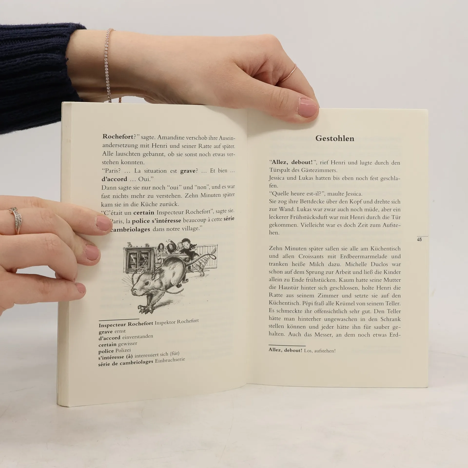 Ein deutsch-französischer Krimi: In der Bretagne ist Nachsaison, viele Ferienhäuser stehen leer. Ideal für Einbrecher! Als auch im Ferienhaus von Henris Eltern eingebrochen wird, versuchen Henri und seine deutschen Freunde, den Täter zu fassen - mithilfe Henris dressierter Ratte.Hier geht es um Spannung und knifflige Fälle!Text in French & German