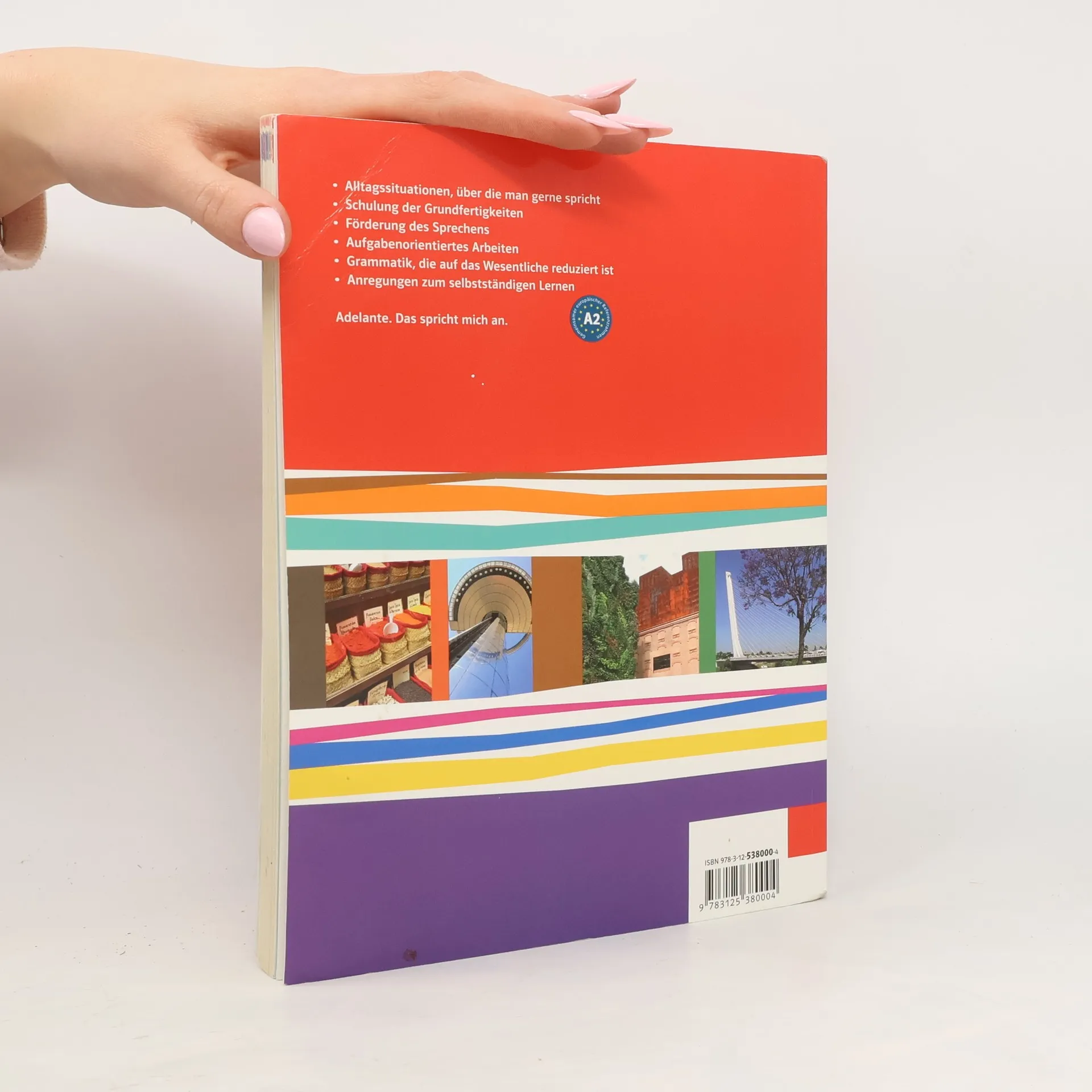9 Unidades, linearer Buchaufbau mit 3 Plateauphasen. Die Protagonisten sind sympathische Jugendliche aus Madrid mit unterschiedlichen schulischen und beruflichen Laufbahnen. Am Ende jeder Unidad steht die Tarea final – eine komplexe Lernaufgabe, in der die erworbenen Kompetenzen eingesetzt werden können.Die Themen- ¡Hola! ¿Qué tal?- ¿Qué te gusta? - En el instituto- Anuncios de piso- La fiesta- Un viaje a Málaga- Mandar un currículum- El mundo del trabajo- ArgentinaHinweis zur Grammatik: Als zusätzliches Angebot zur im Schülerbuch enthaltenen Gramática (Seite 142–176) steht Ihnen eine lektionsbegleitende Grammatik als Online-Link 538000-0050 zur Verfügung. Zur lektionsbegleitenden Grammatik