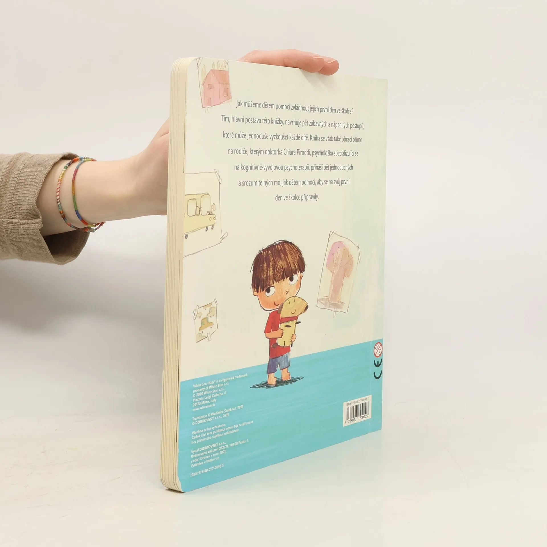 Jak můžeme dětem pomoci zvládnout jejich první den ve školce? Tim, hlavní postava této knížky, navrhuje pět zábavných a nápaditých postupů, které může jednoduše vyzkoušet každé dítě. Kniha se však také obrací přímo na rodiče a přináší pět jednoduchých rad, jak dětem pomoci, aby se na svůj první den ve školce připravily.