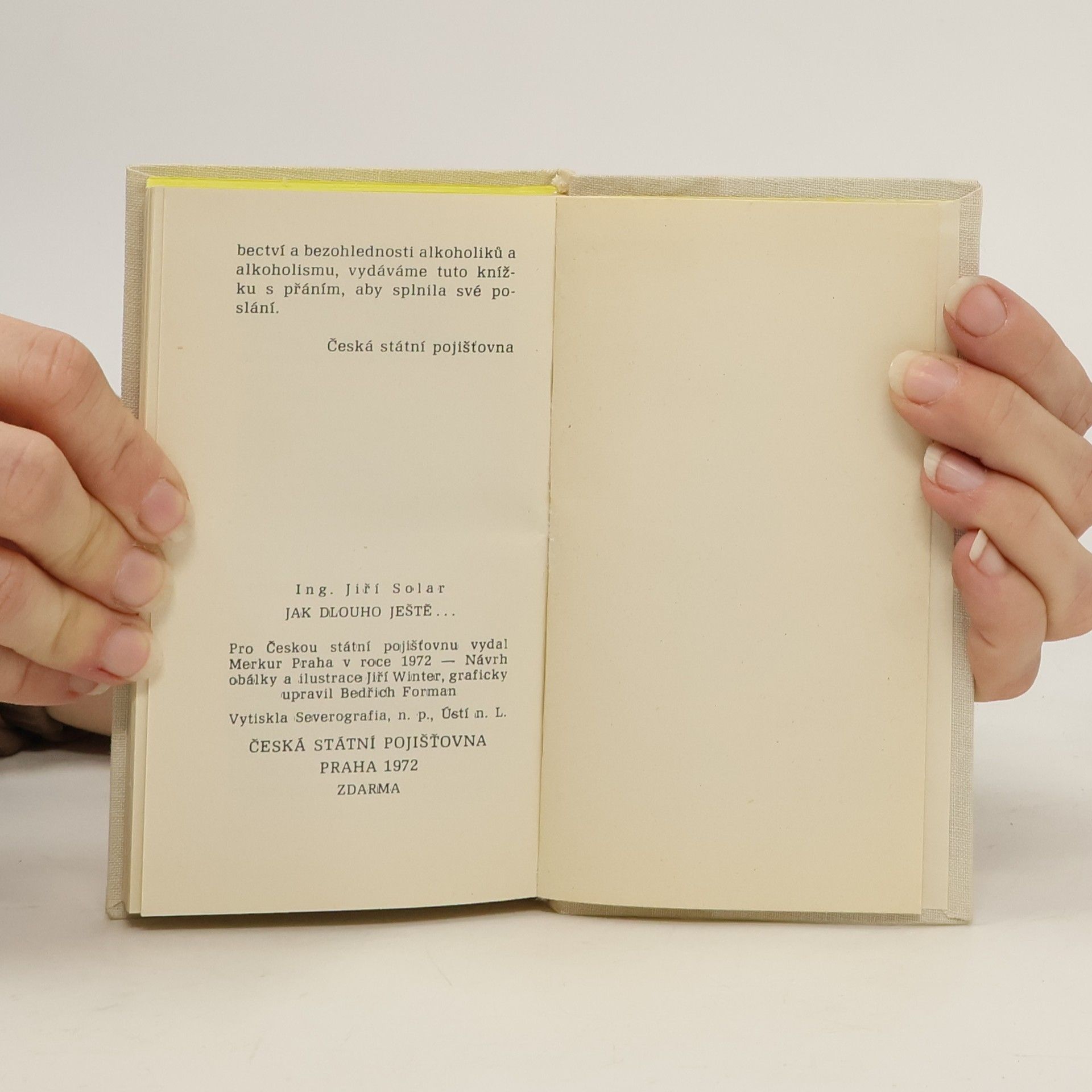 Kniha o rizicích, dopadech, humorných kontextech i faktech alkoholismu vydaná pro Českou státní pojišťovnu. Návrh obálky a ilustrace Jiří Winter, graficky upravil Bedřich Forman. Vytiskla Severografia, n. p., Ústí n. L. ZDARMA Na knize není možno naleznout ISBN.
