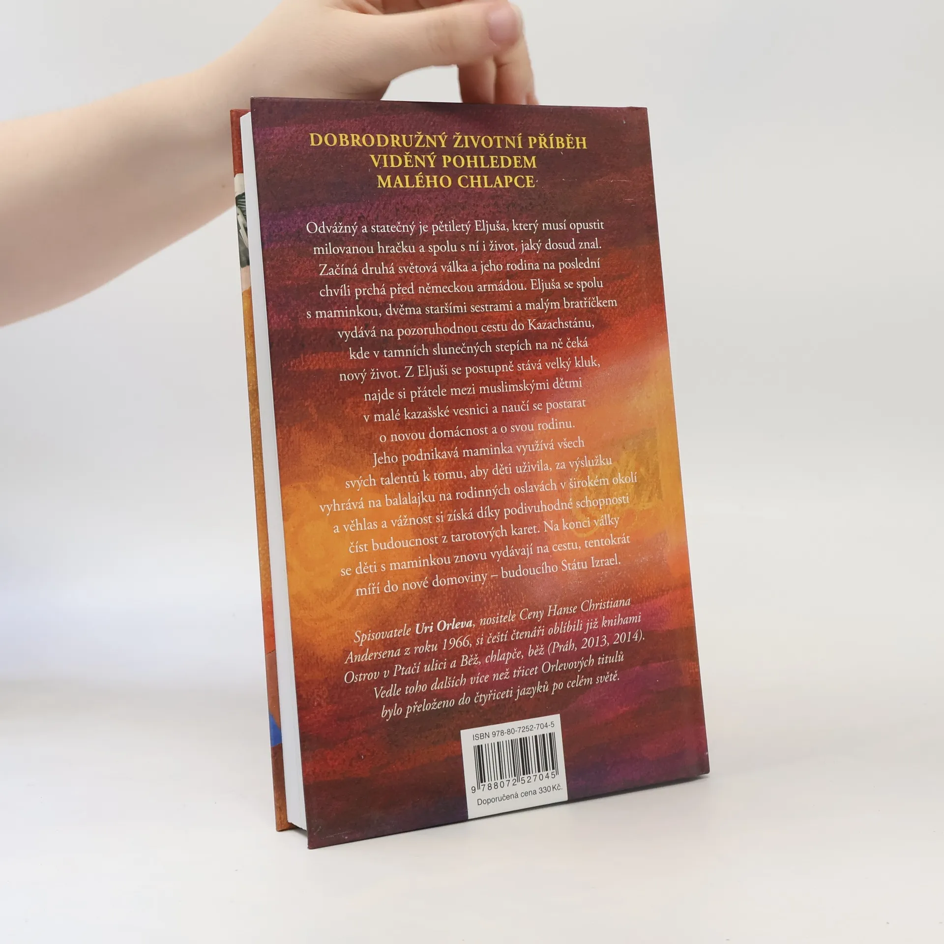 Další válečný příběh pro děti od autora knih Ostrov v ptačí ulici a Běž, chlapče, běž DOBRODRUŽNÝ ŽIVOTNÍ PŘÍBĚH VIDĚNÝ POHLEDEM MALÉHO CHLAPCE Odvážný a statečný je pětiletý Eljuša, který musí opustit milovanou hračku a spolu s ní i život, jaký dosud znal. Začíná druhá světová válka a jeho rodina na poslední chvíli prchá před německou armádou. Eljuša se spolu s maminkou, dvěma staršími sestrami a malým bratříčkem vydává na pozoruhodnou cestu do Kazachstánu, kde v tamních slunečných stepích na ně čeká nový život. Z Eljuši se postupně stává velký kluk, najde si přátele mezi muslimskými dětmi v malé kazašské vesnici a naučí se postarat o novou domácnost a o svou rodinu. Jeho podnikavá maminka využívá všech svých talentů k tomu, aby děti uživila, za výslužku vyhrává na balalajku na rodinných oslavách v širokém okolí a věhlas a vážnost si získá díky podivuhodné schopnosti číst budoucnost z tarotových karet. Na konci války se děti s maminkou znovu vydávají na cestu, tentokrát míří do nové domoviny – budoucího Státu Izrael.