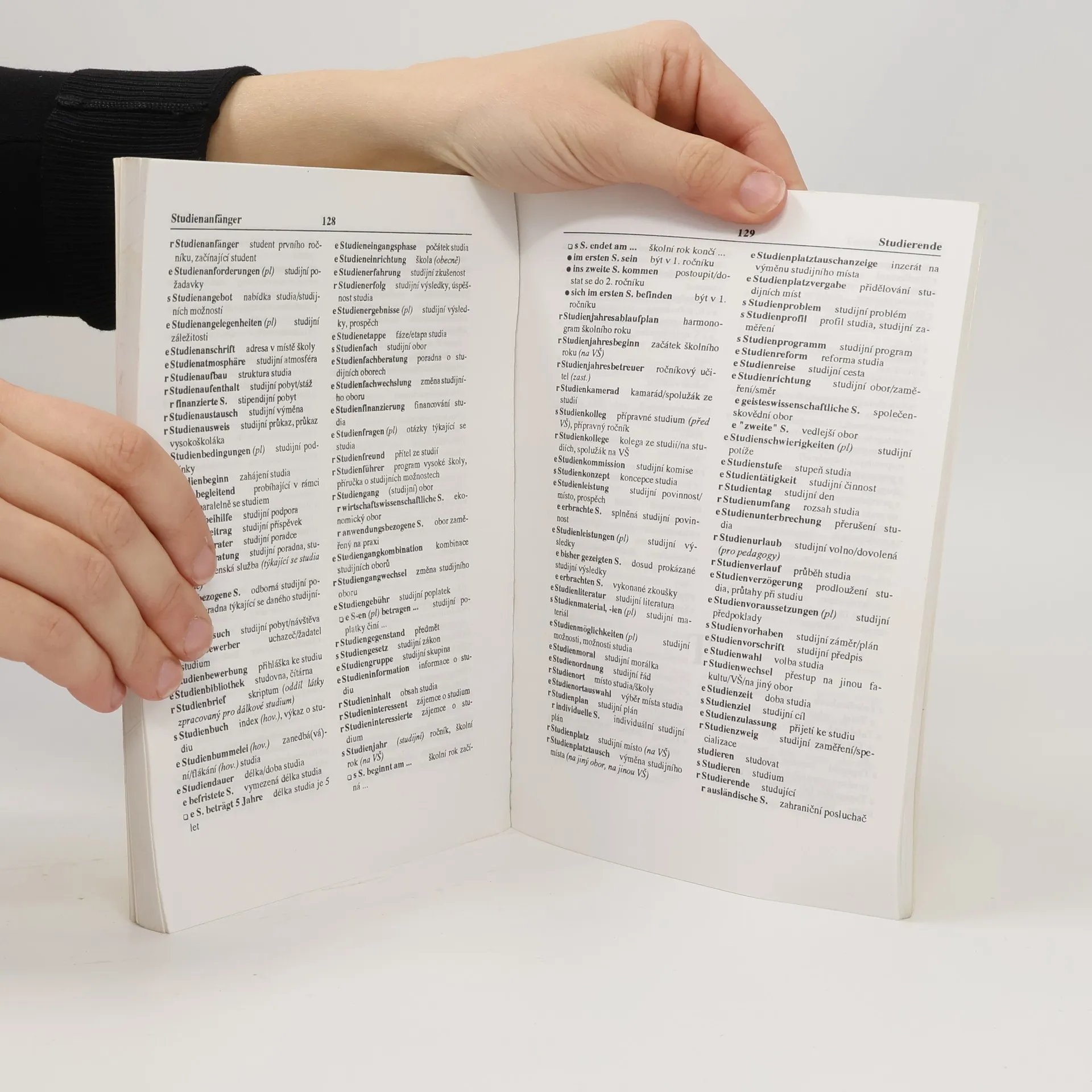 Plný název: Česko-německý a německo-český slovník pro studium a praxi doma i v zahraničí s dodatky : vzory životopisů, cizojazyčné formuláře, nejužívanější zkratky, seznam univerzit (Německo, Rakousko, Švýcarsko), důležité adresy.