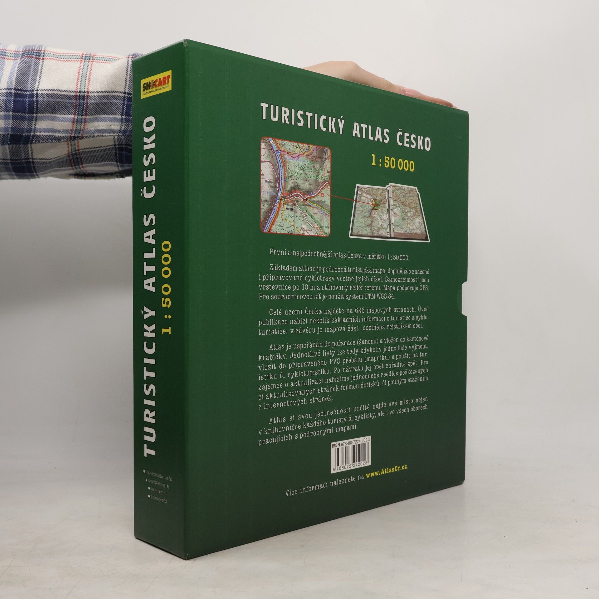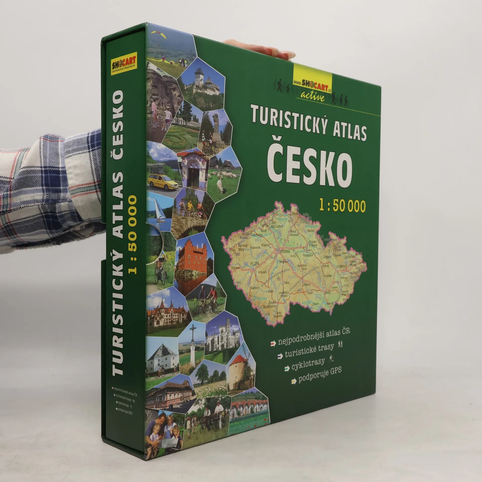 Nejpodrobnější atlas Česka v měřítku 1:50 000. Kompletní řada 72 turistických map v jednom atlase! Navíc se všemi značenými i doporučenými cyklotrasami! Základem atlasu je podrobná turistická mapa, doplněná o značené cyklotrasy včetně jejich čísel. Samozřejmostí jsou vrstevnice po 10 m a stínovaný reliéf terénu. Mapa podporuje GPS. Pro souřadnicovou síť je použit systém WGS84. Celé území Česka najdete na 626 mapových stranách. Úvod publikace nabízí několik základních informací o turistice a cykloturistice, v závěru je mapová část doplněna rejstříkem obcí. Atlas je uspořádán do pořadače (šanonu) a vložen do kartónové krabičky. Jednotlivé listy lze tedy kdykoliv jednoduše vyjmout, vložit do připraveného euroobalu (mapníku) a použít na turistiku či cykloturistiku. Po návratu jej opět zařadíte zpět. Pro zájemce o aktualizaci jsou připraveny reedice poškozených či aktualizovaných stránek formou dotisků, či pouhým stažením z internetových stránek.