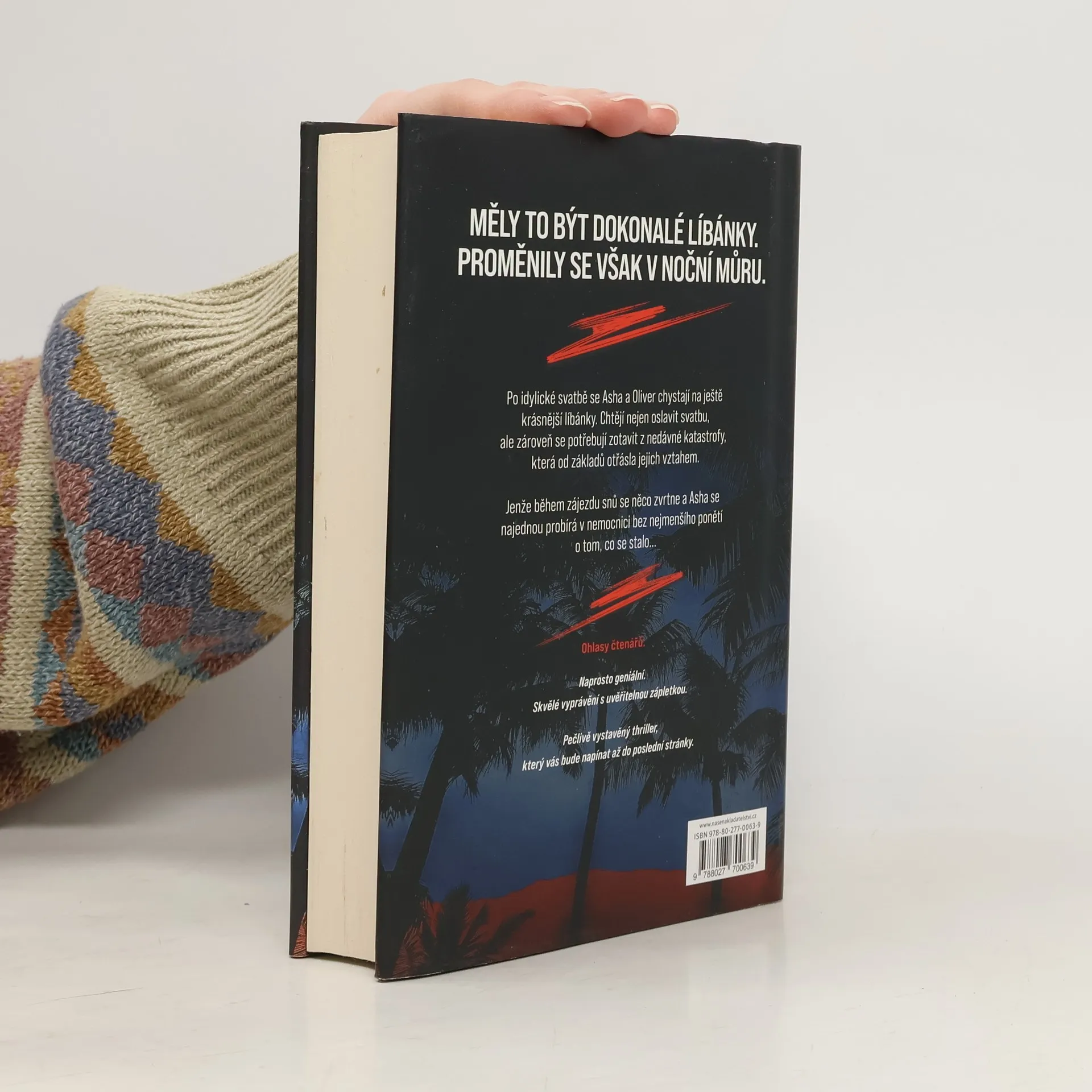 Měly to být dokonalé líbánky. Novomanželé Asha a Oliver Graveneyovi se po své luxusní svatbě vydávají do pětihvězdičkového plážového resortu ve Vietnamu, kde na ně čekají bílé písky, azurové moře, soukromé vily a prvotřídní kuchyně. Chystají se tu nejen oslavit svůj sňatek, ale také se zotavit z nedávné tragédie, která je málem stála vztah. Ne vždy jde však všechno podle plánu. Zájezd snů se najednou zvrtne a pár se ocitá v nebezpečí. Ráj se změní v noční můru. Po brutálním napadení se Asha probere v nemocnici, aniž by věděla, kde je a co se stalo. Po jejím manželovi není nikde ani stopy. Při snaze odhalit pravdu o tom, co se jim na dovolené přihodilo, se Asha dozvídá překvapivé skutečnosti, o kterých dosud neměla ani tušení, a zjišťuje, že se její svět od světa jejího manžela liší více, než si uvědomovala. Napínavý psychologický thriller čtenáře zaujme také neotřelou formální stránkou, ať už se jedná o prolínání několika časových rovin či střídání různých způsobů vyprávění.