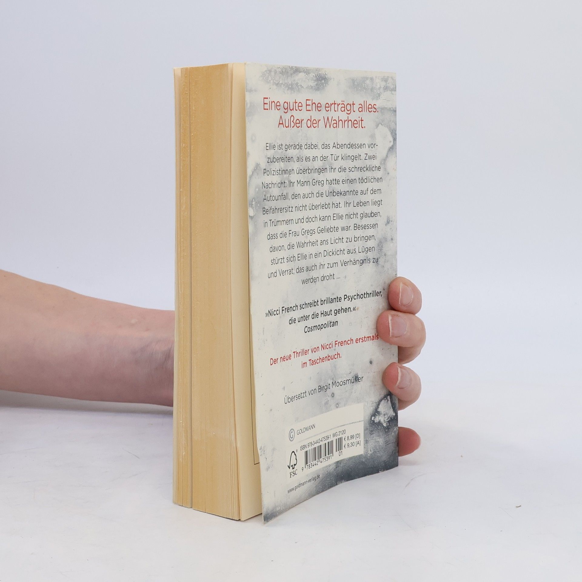 Eine gute Ehe erträgt alles. Außer der Wahrheit Ellie ist gerade dabei, das Abendessen vorzubereiten, als es an der Tür klingelt. Zwei Polizistinnen überbringen ihr die schreckliche Nachricht: Ihr Mann Greg hatte einen tödlichen Autounfall, den auch die Unbekannte auf dem Beifahrersitz nicht überlebt hat. Ihr Leben liegt in Trümmern und doch kann Ellie nicht glauben, dass die Frau Gregs Geliebte war. Besessen davon, die Wahrheit ans Licht zu bringen, stürzt sich Ellie in ein Dickicht aus Lügen und Verrat, das auch ihr zum Verhängnis zu werden droht.