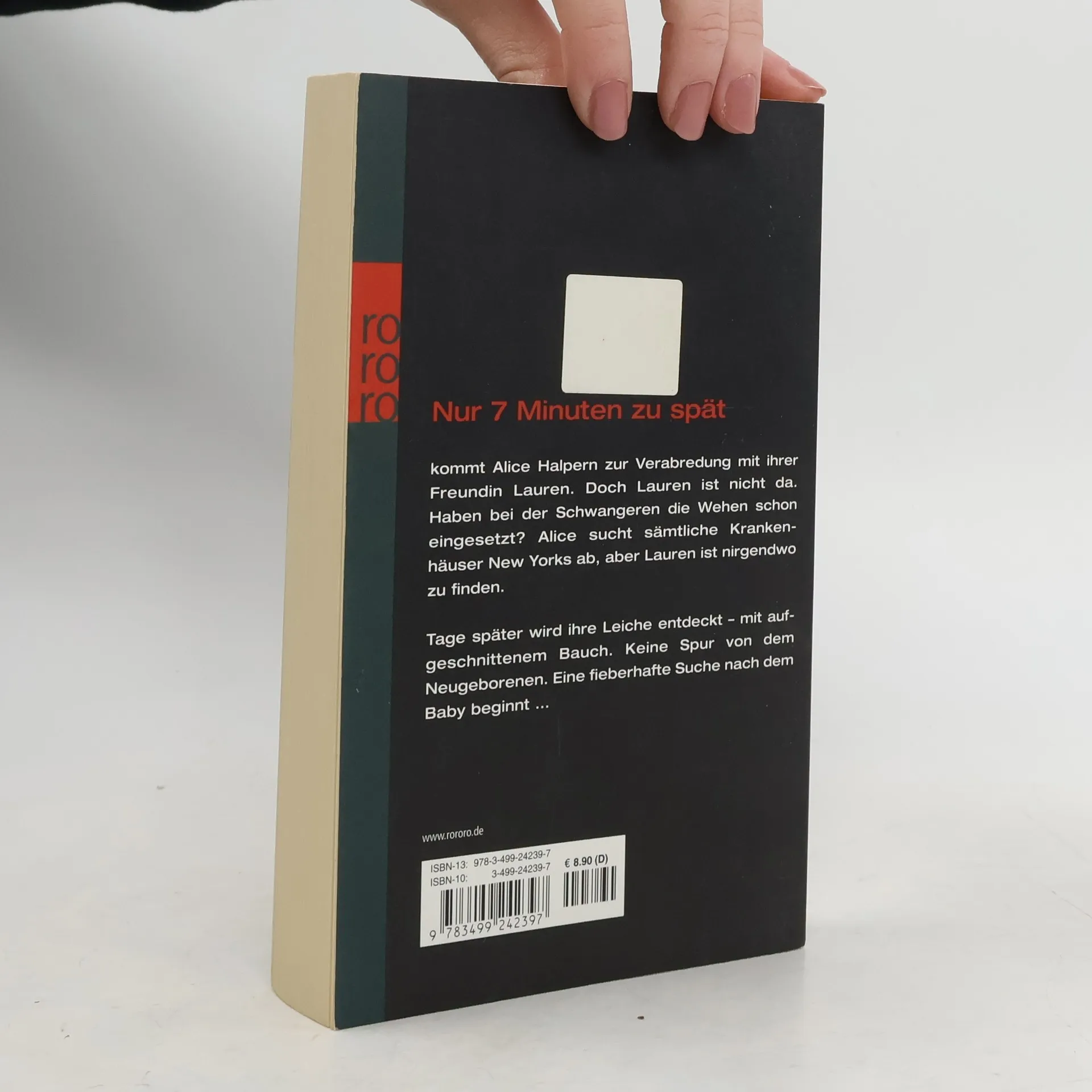 Nur sieben Minuten zu spätkommt Alice Halpern zur Verabredung mit ihrer Freundin Lauren. Doch Lauren ist nicht da. Haben bei der Schwangeren die Wehen schon eingesetzt? Alice sucht sämtliche Krankenhäuser New Yorks ab, aber Lauren ist nirgendwo zu finden. Tage später wird ihre Leiche gefunden – mit aufgeschnittenem Bauch. Keine Spur von dem Neugeborenen. Eine fieberhafte Suche nach dem Baby beginnt …