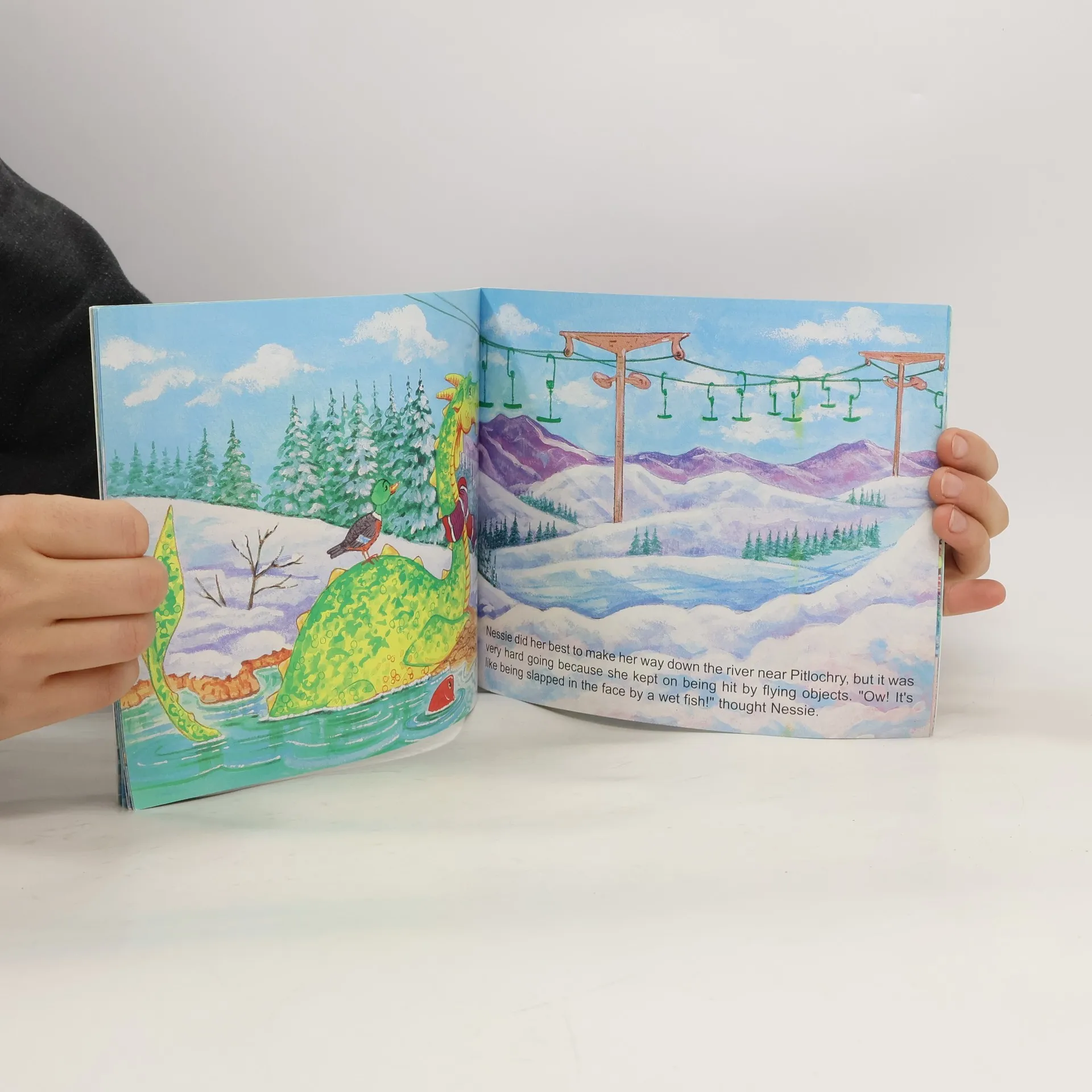 Nessie needs her glasses in order to do all the things that a Loch Ness Monster likes to do! However when her glasses are broken she does not have the money to pay for a new pair. Nessie sets off on a tour of Scotland to see if any of her relatives can help her. The trouble is that her eyesight really is quite poor!