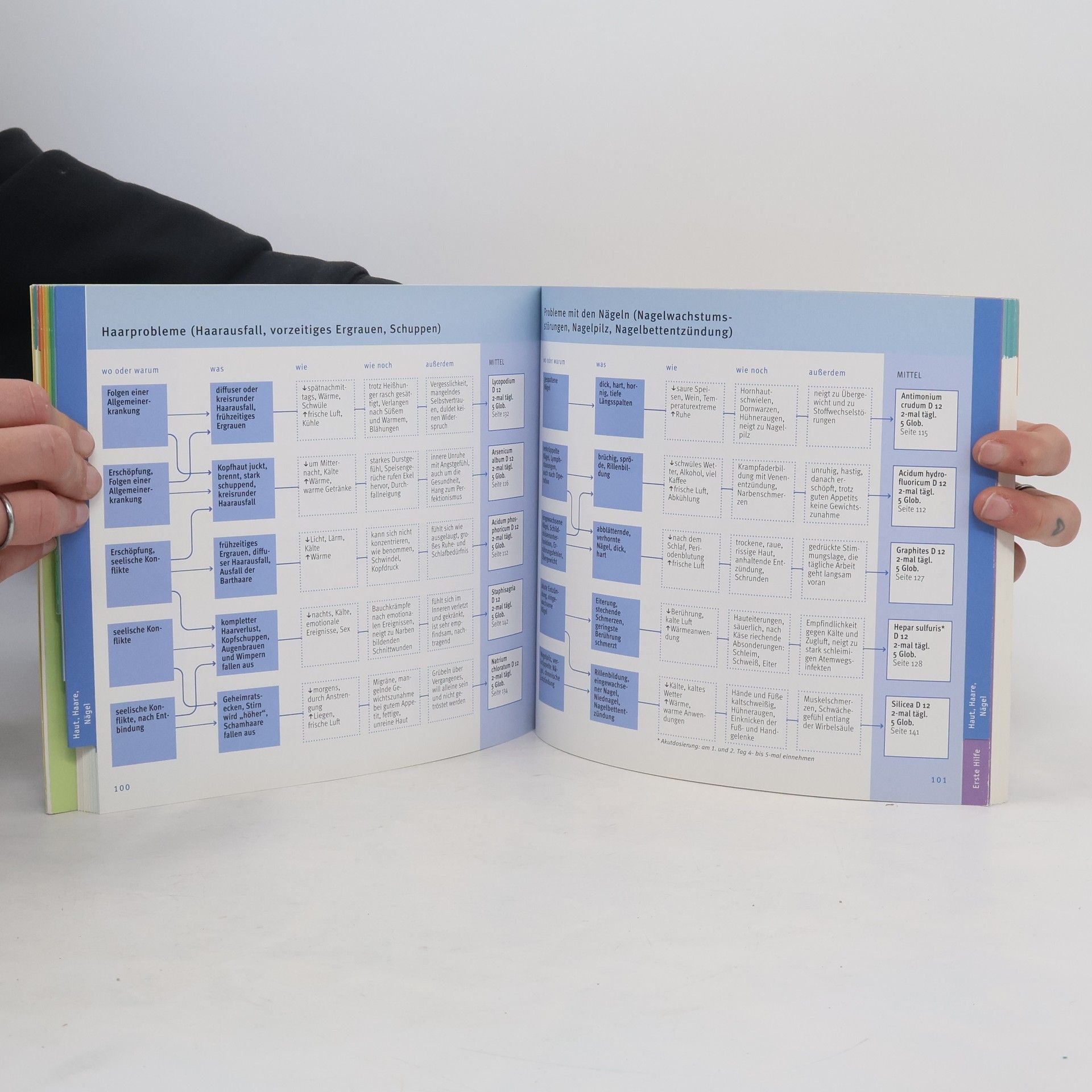 Auf den ersten Griff das richtige Mittel Homöopathie ist wunderbar zur Selbstbehandlung von Alltagsbeschwerden geeignet, doch manchmal fällt es schwer, auf die Schnelle das passende Mittel auszuwählen. Wer einen sicheren und schnellen Weg zum richtigen Mittel sucht, der ist mit dem völlig neuartigen Konzept des Quickfinders optimal bedient. Mit Hilfe von übersichtlichen Diagrammtafeln wird die Selbstdiagnose sehr viel einfacher. Auch Leser, die nicht so viel über die Hintergründe der Homöopathie lesen wollen, finden sich bestens damit zurecht. Und wer mehr wissen möchte, der erfährt natürlich auch etwas über Hintergründe und Grundsätze der Homöopathie. Ein Kapitel mit knappen, präzisen Mittelbeschreibungen rundet dieses besondere Homöopathie-Buch ab.